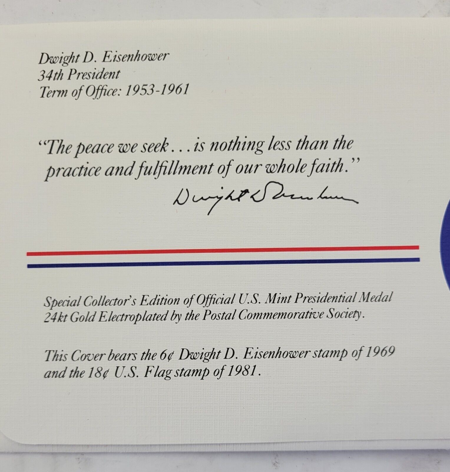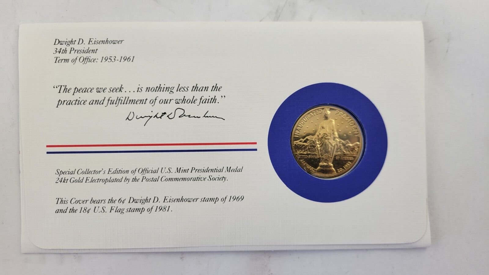 Eisenhower Presidential Covers Medal Postal Commemorative Society Gold Plated