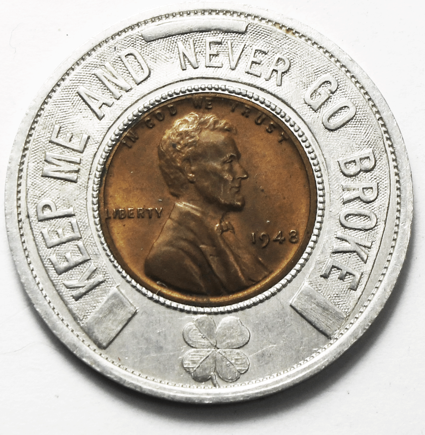 Encased Penny 1c 1948 Wheat Penny Bell Chevrolet Hamilton Blvd Peoria Illinois