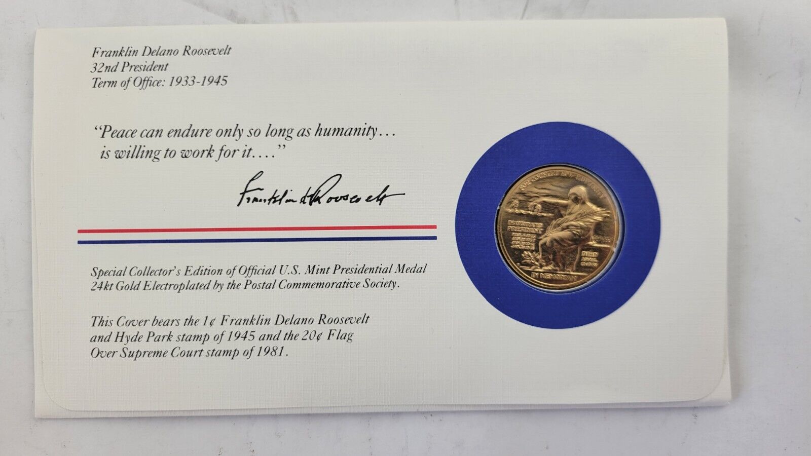 F D Roosevelt Presidential Covers Medal Postal Commemorative Society Gold Plated