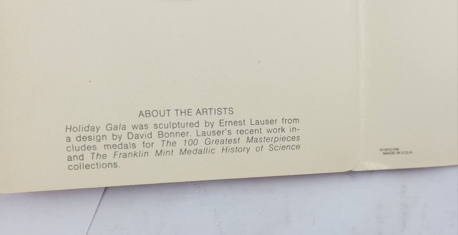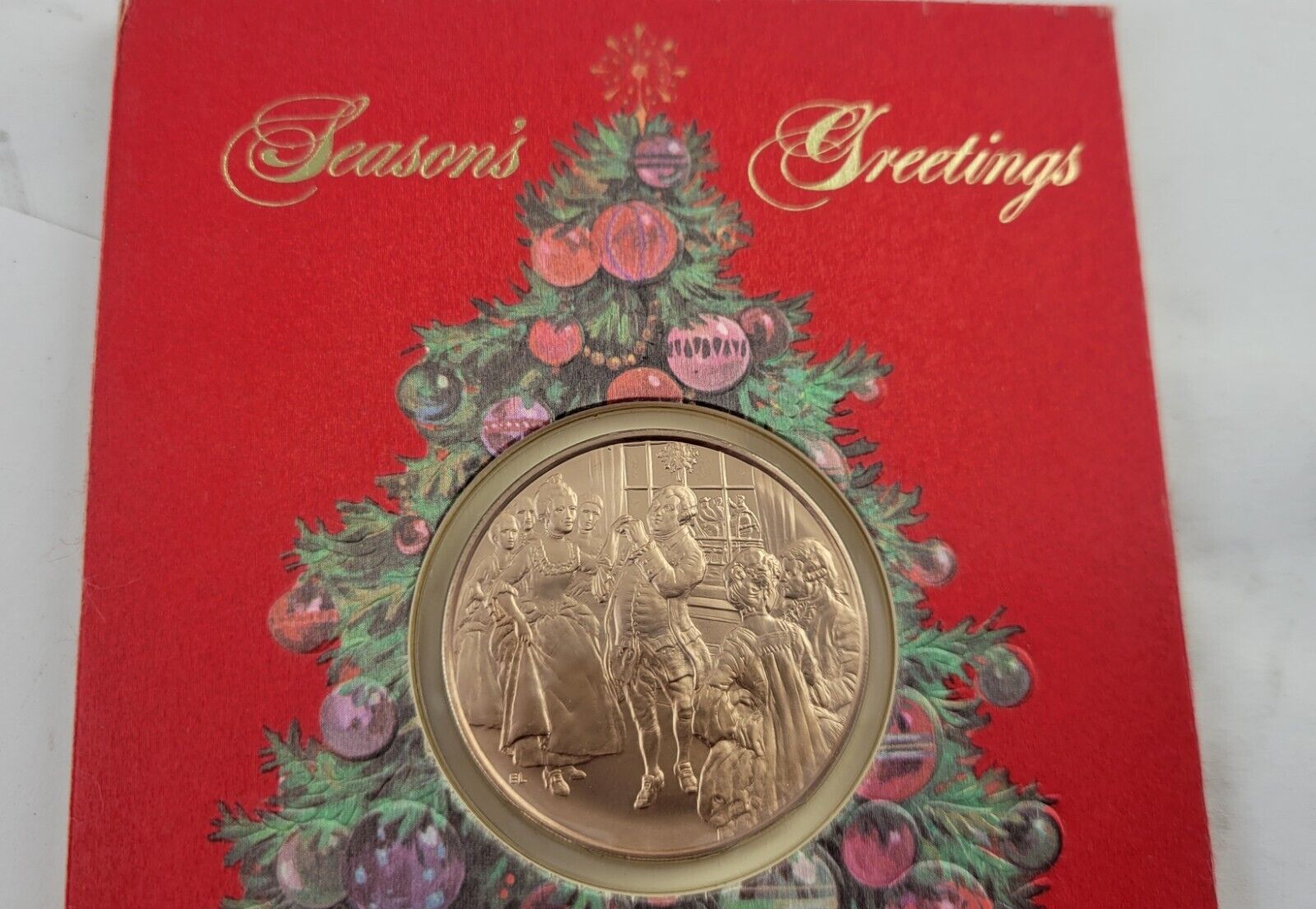 Franklin Mint Bronze Holiday Gala, 1975 Christmas Coin w/Holder Card