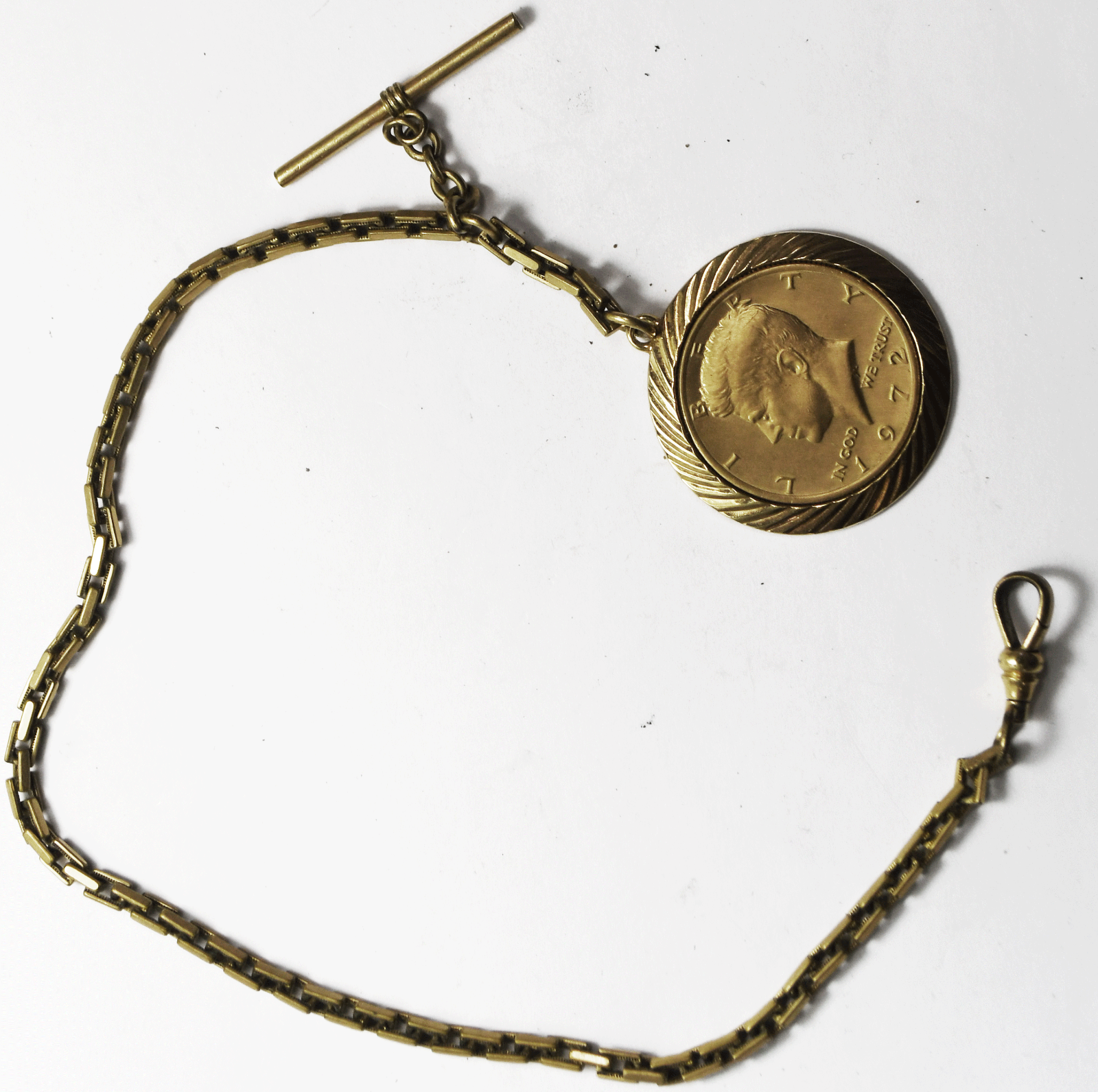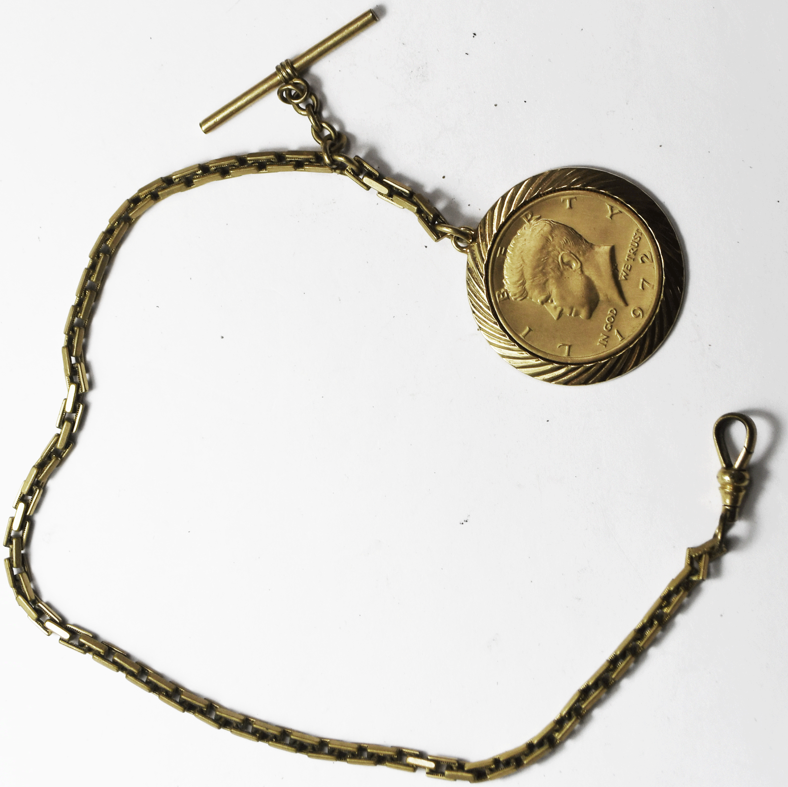 Gold Filled Pocket Watch Albert 4mm Chain 14" Gold Plated 1972 50c Fob