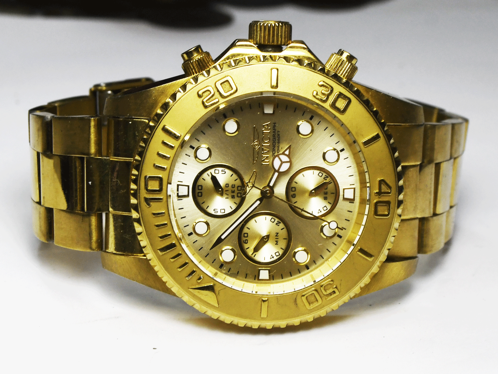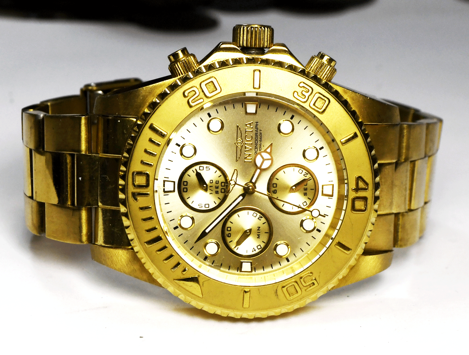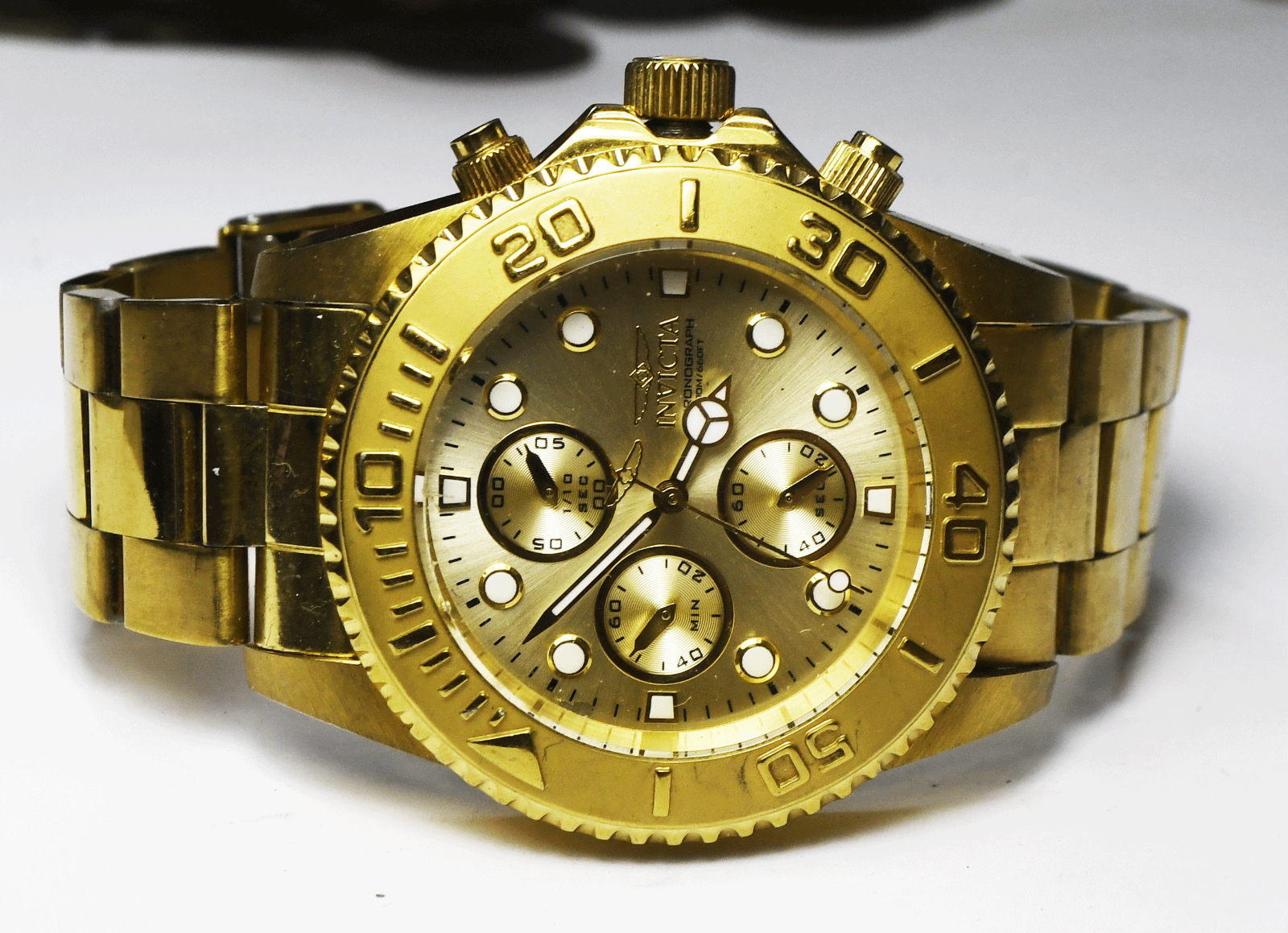 Invicta Pro Diver 1774 Gold Tone Stainless Split Second Chrongraph 45mm Watch