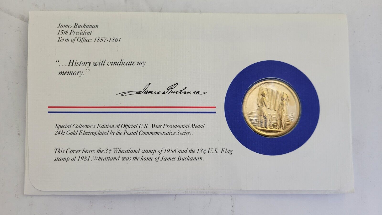J Buchanan Presidential Covers Medal Postal Commemorative Society Gold Plated