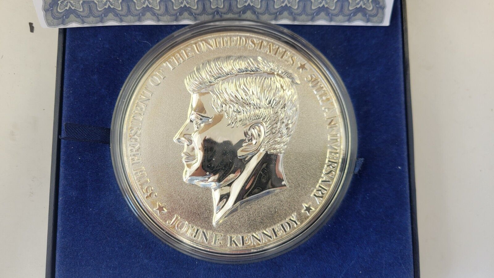John F Kennedy Half Pound Silver Plated Commemorative w/1964 90% Half Dollar