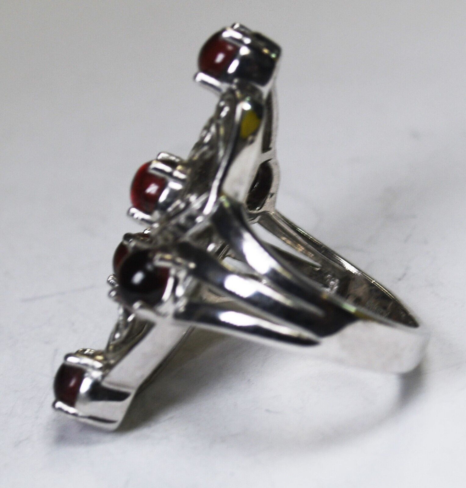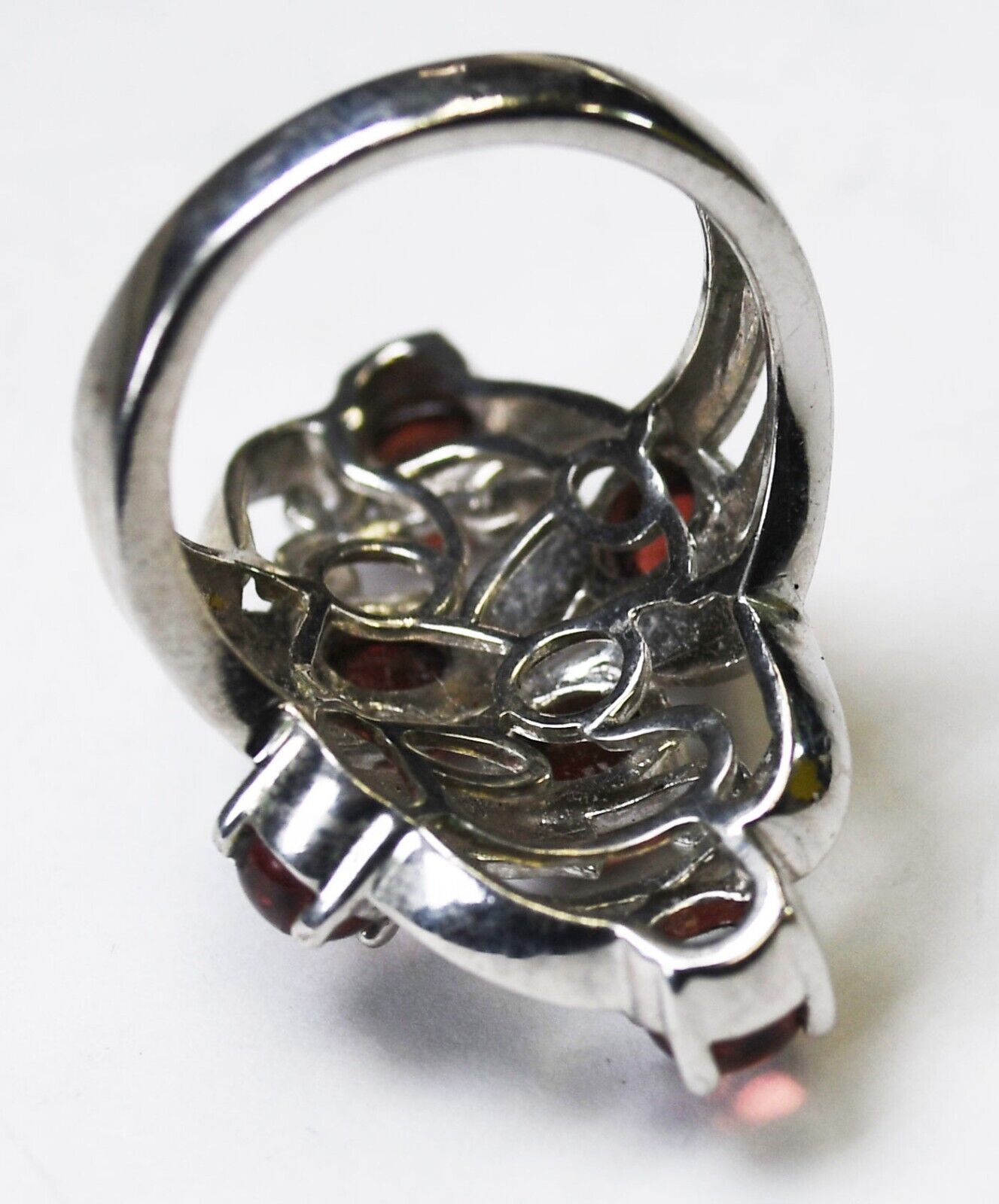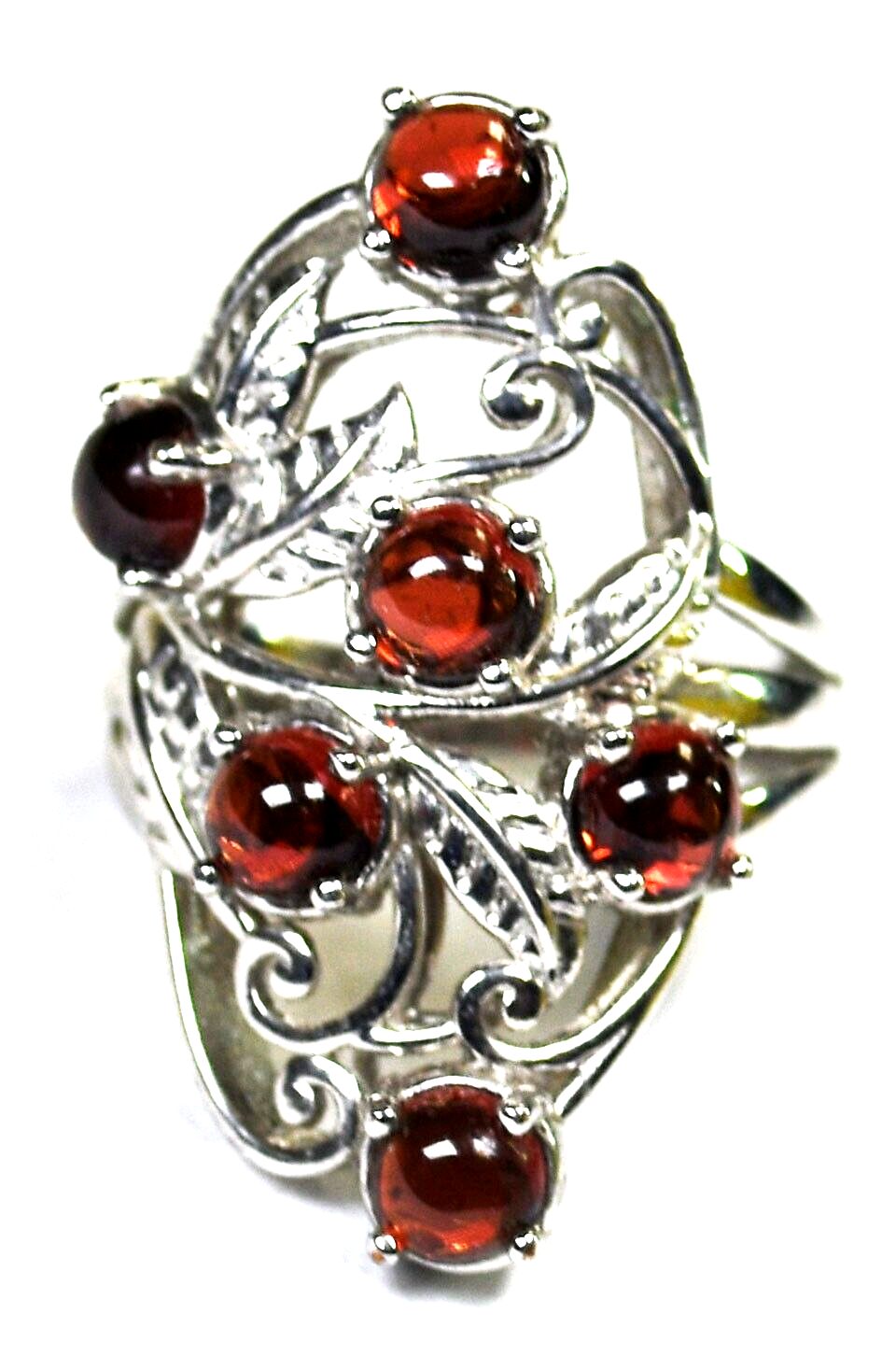 Karis 6 Garnet Filigree Floral Silver Tone Ring 33mm Size 8