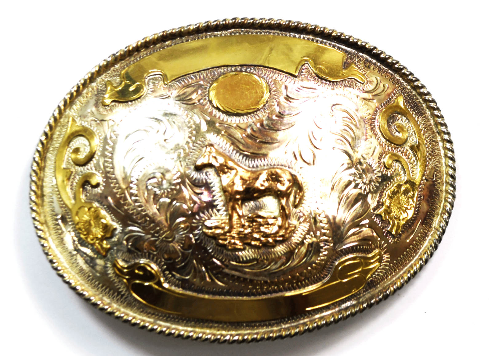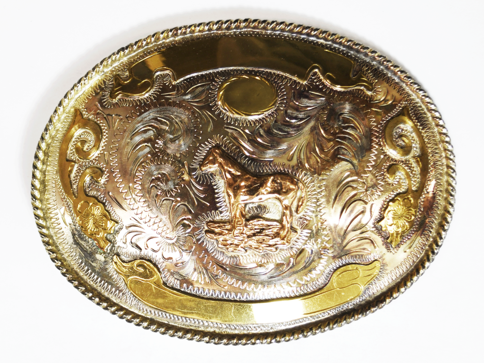 Large Silver Plate Mexico 5" x 3-5/8" Belt Buckle Horse Western 40mm Belt