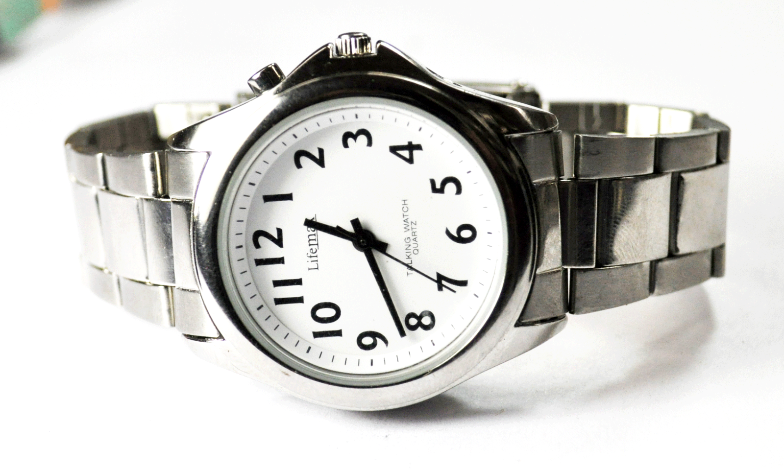 Lifemax Talking Watch White Dial Wristwatch Quartz 36mm Alarm Day Date