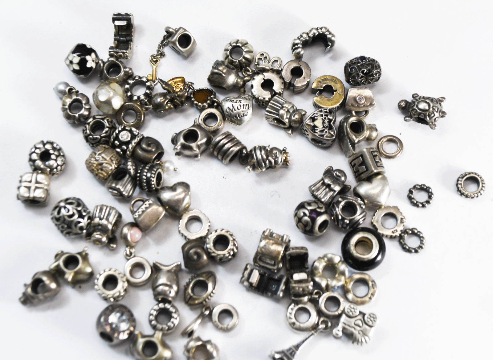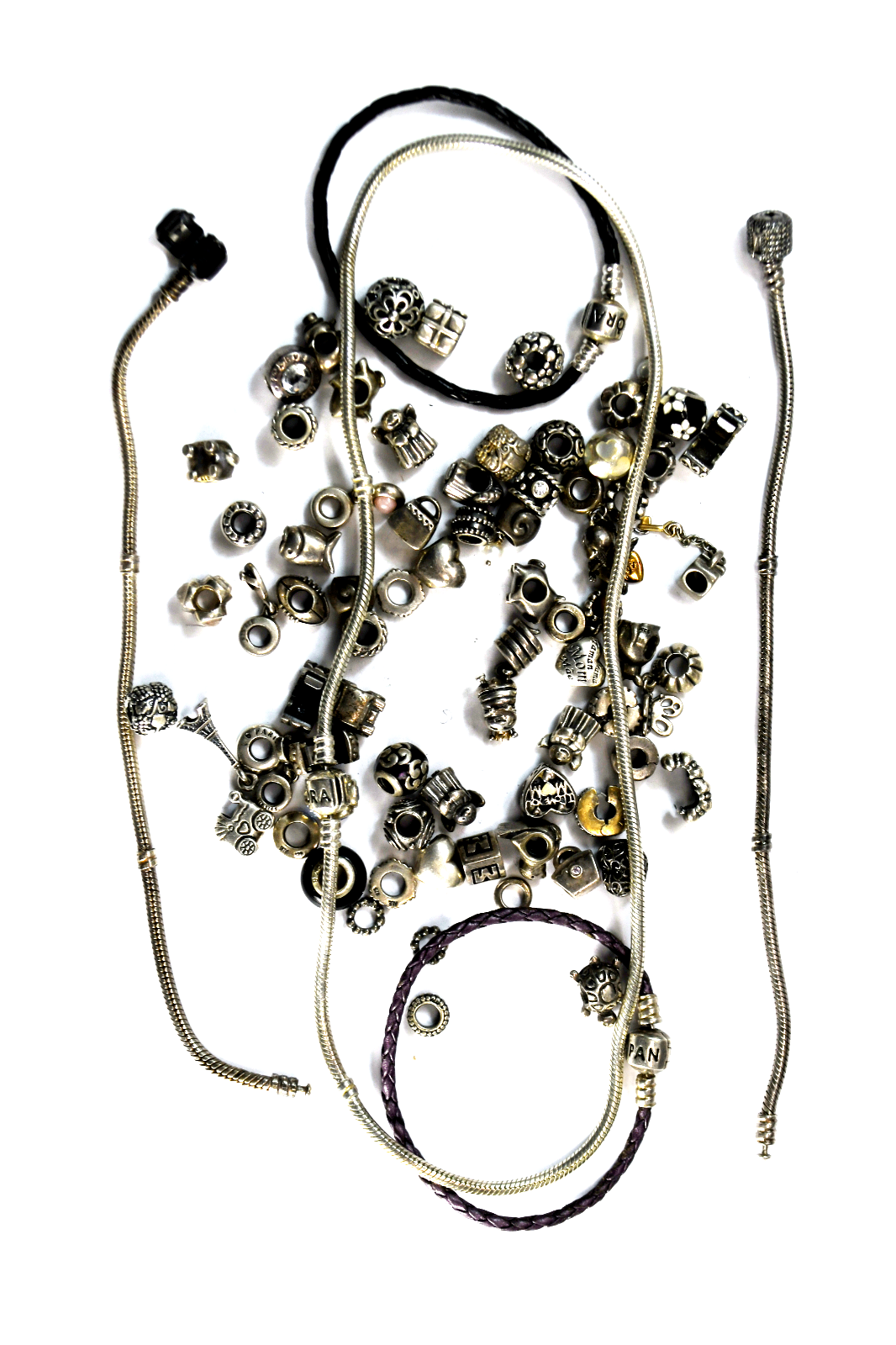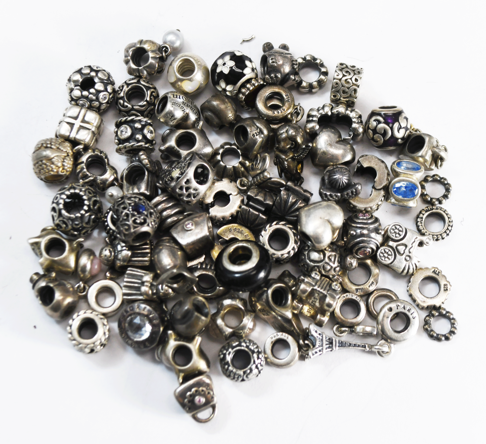 Lot of 70 Sterling Silver Pandora Ale Charms 4 Bracelets & 19.5" Necklace 280g