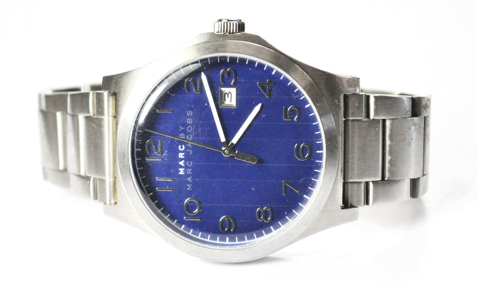 Marc Jacobs Jimmy Watch Blue Dial MBM5043 Date 44mm Stainless Steel Wristwatch
