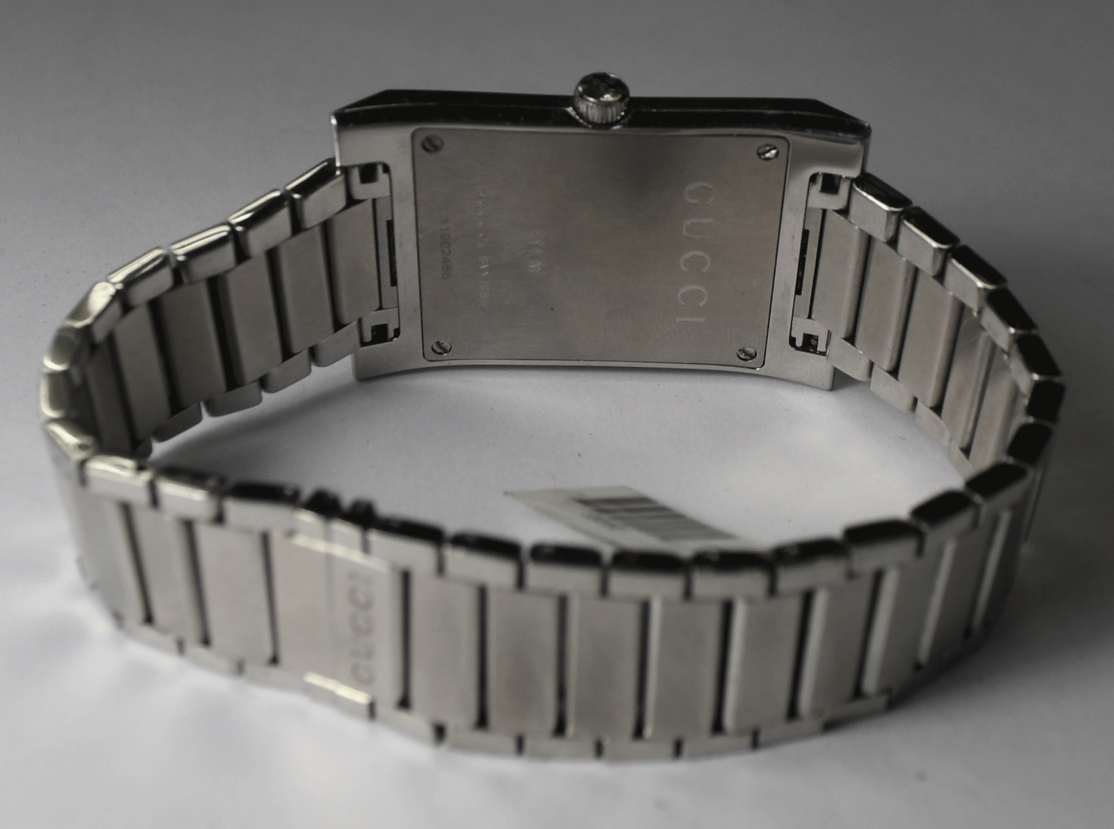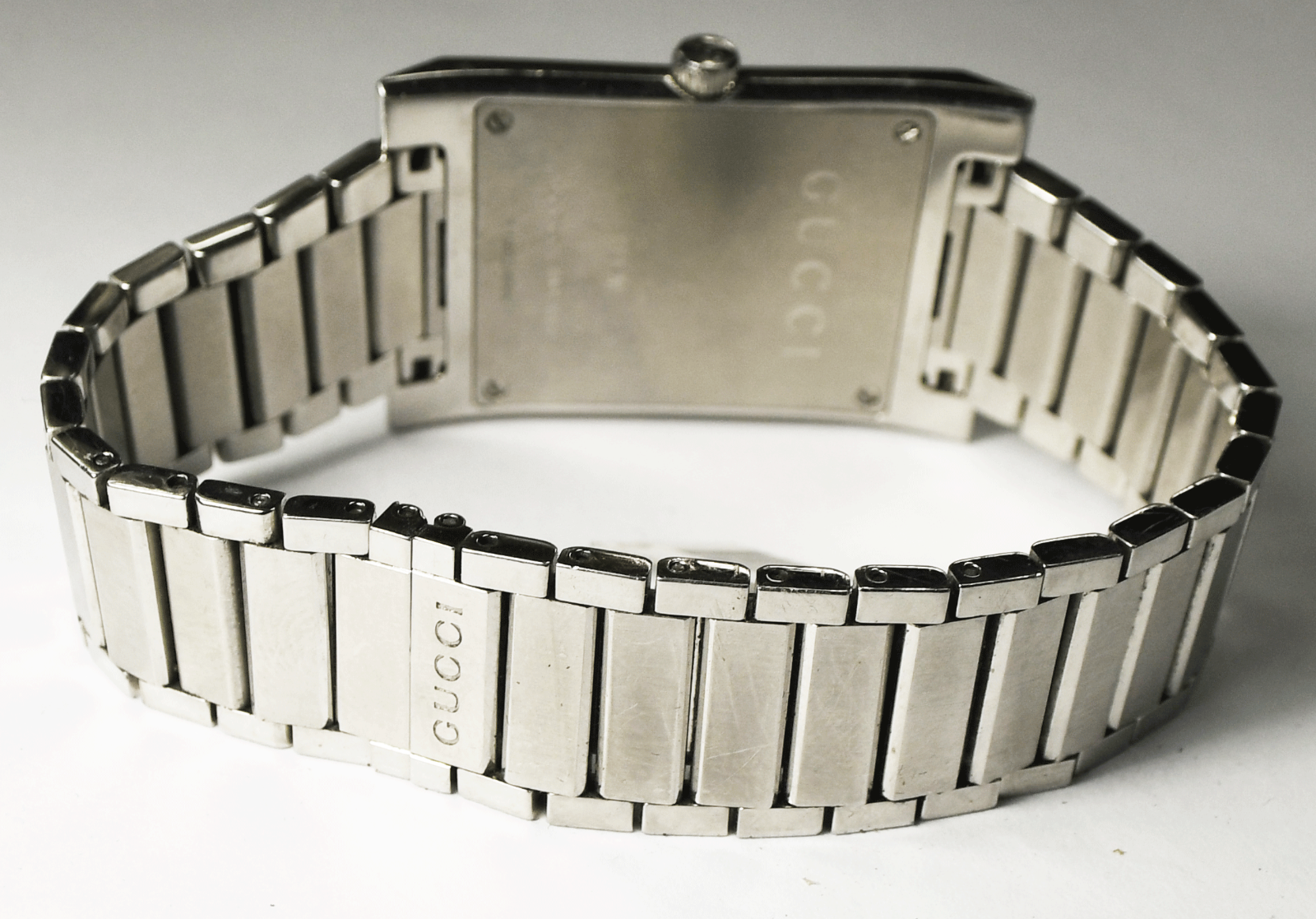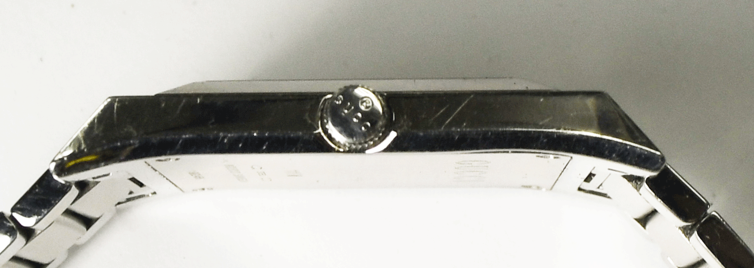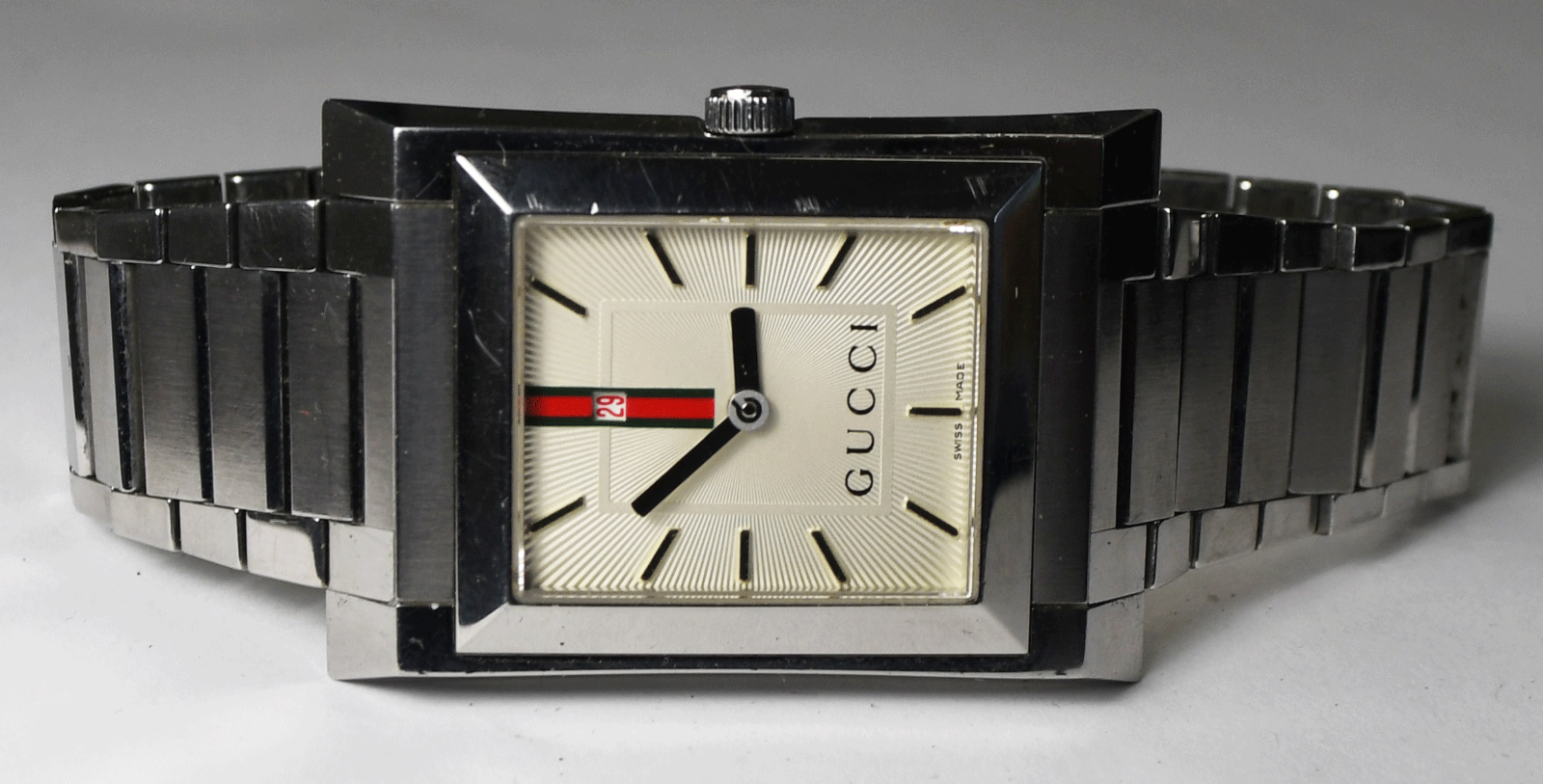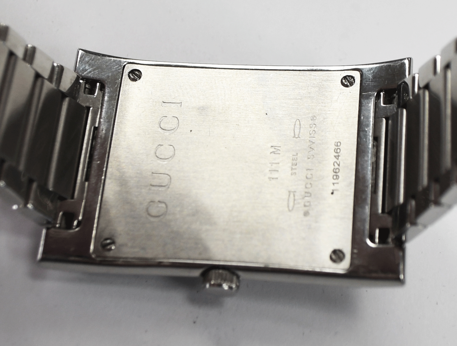 Men's Gucci 111m Silver Sunburst Dial Date 30mm Stainless 7" Wrist Rectangle