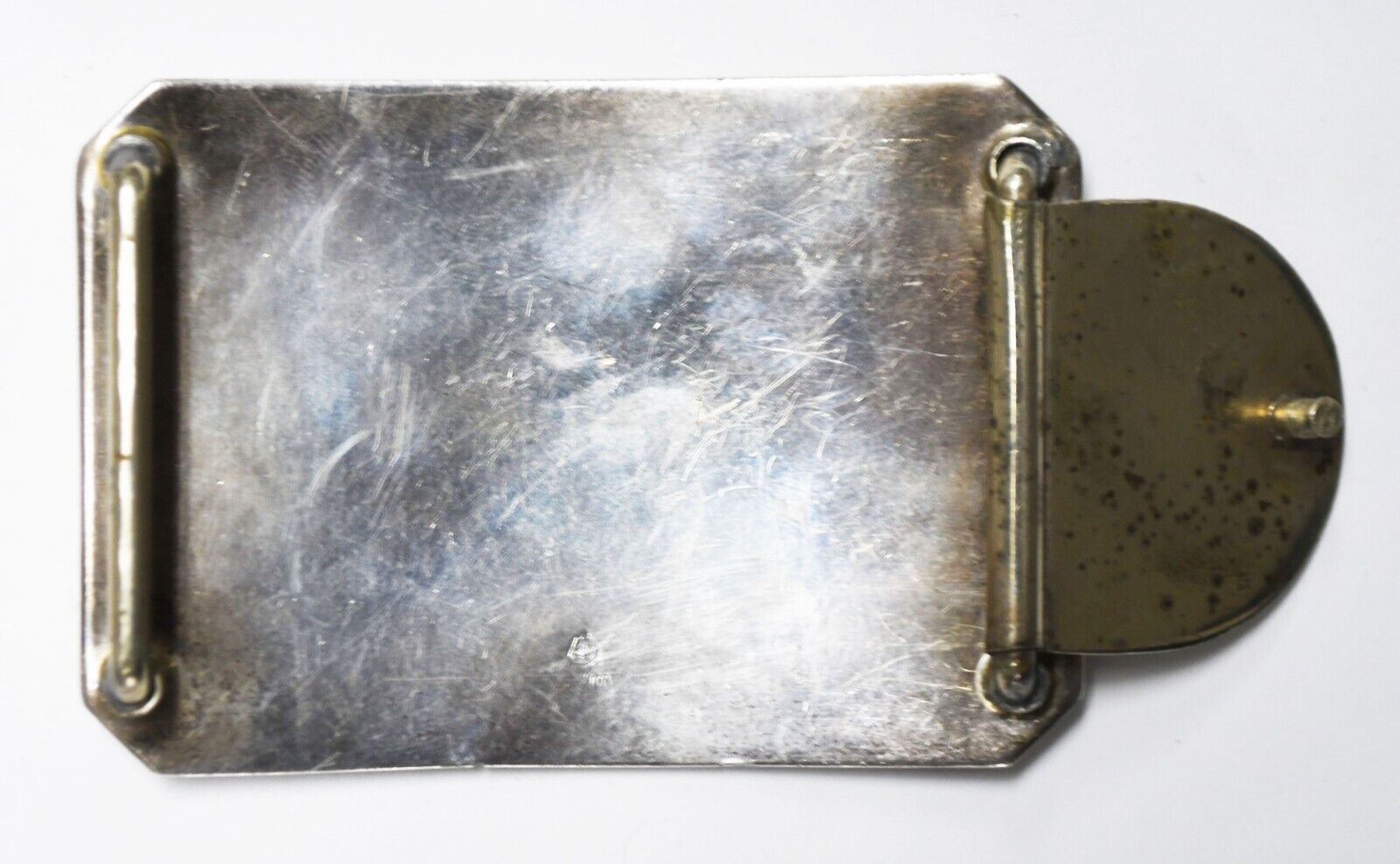 Mexico 900 Silver Bronze Horse Chip Turquoise Inlay Belt Buckle 2.25" x 3.25"