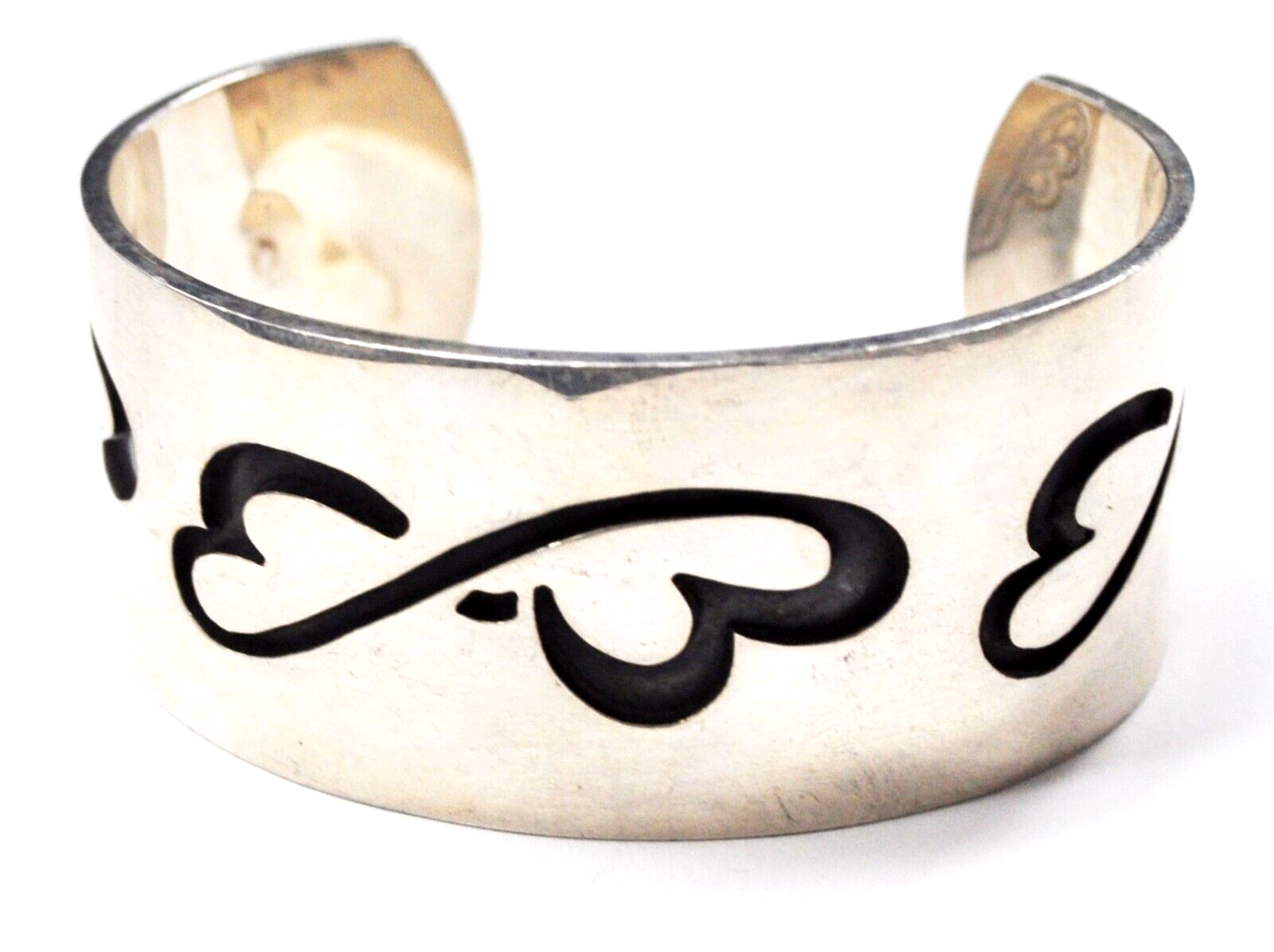 Mexico 950 Silver Designer Signed BB 29mm Wide Cuff Bracelet 7" Wrist