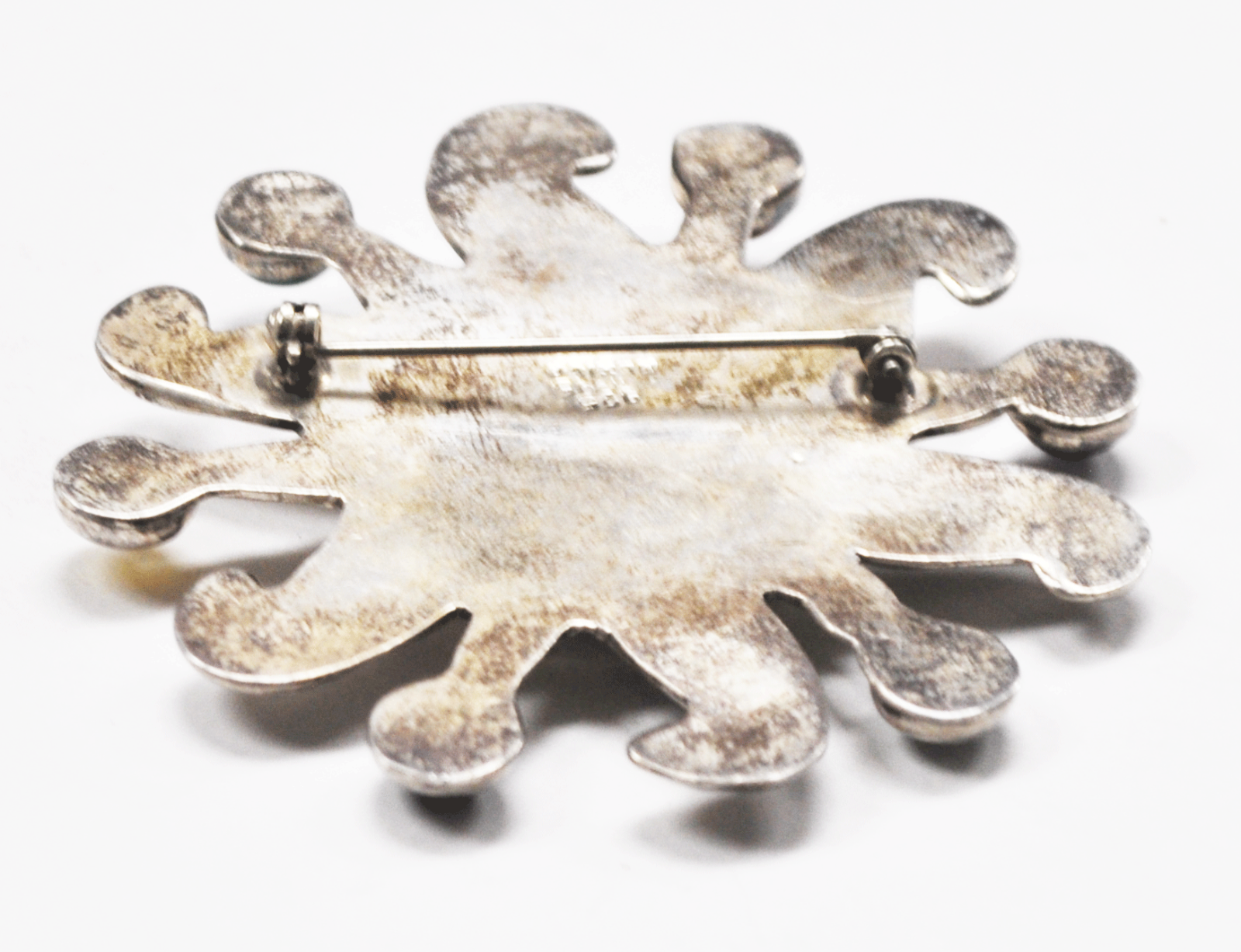 Mexico Sterling Silver Large Sun Multi Color Stone Pendant 67mm