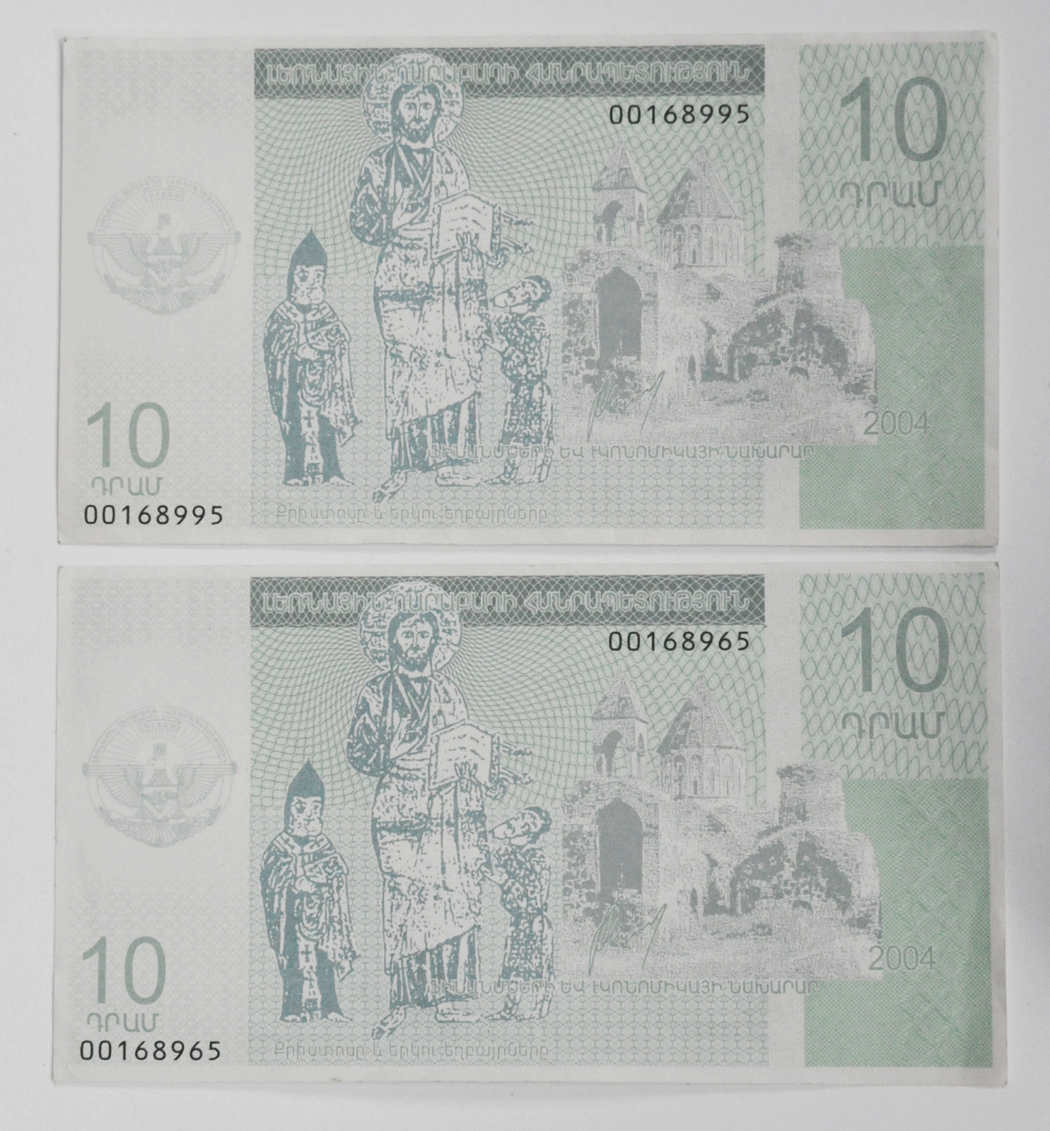 Nagorno Karbakh 10 Ten Dram Notes Currency 00168965 & 995