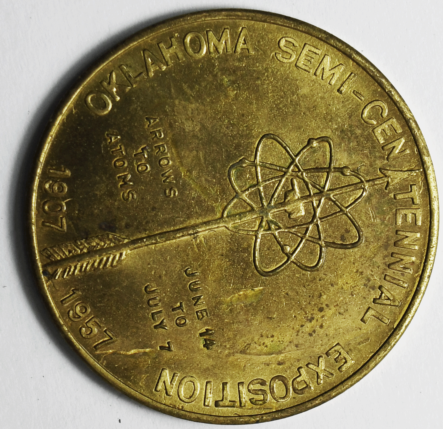 Oklahoma 1957 50th Anniversary Medal Celebration Semi Centennial Exposition 32mm