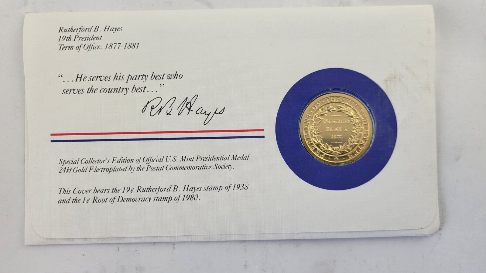 R. B. Hayes Presidential Covers Medal Postal Commemorative Society Gold Plated