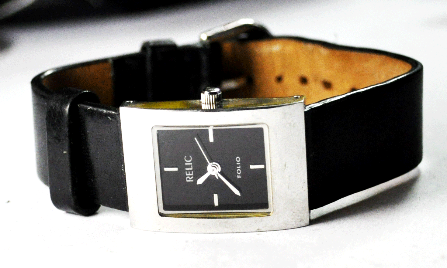 Relic Folio Black Dial Quartz Wristwatch 19mm ZR33483 WR 30m