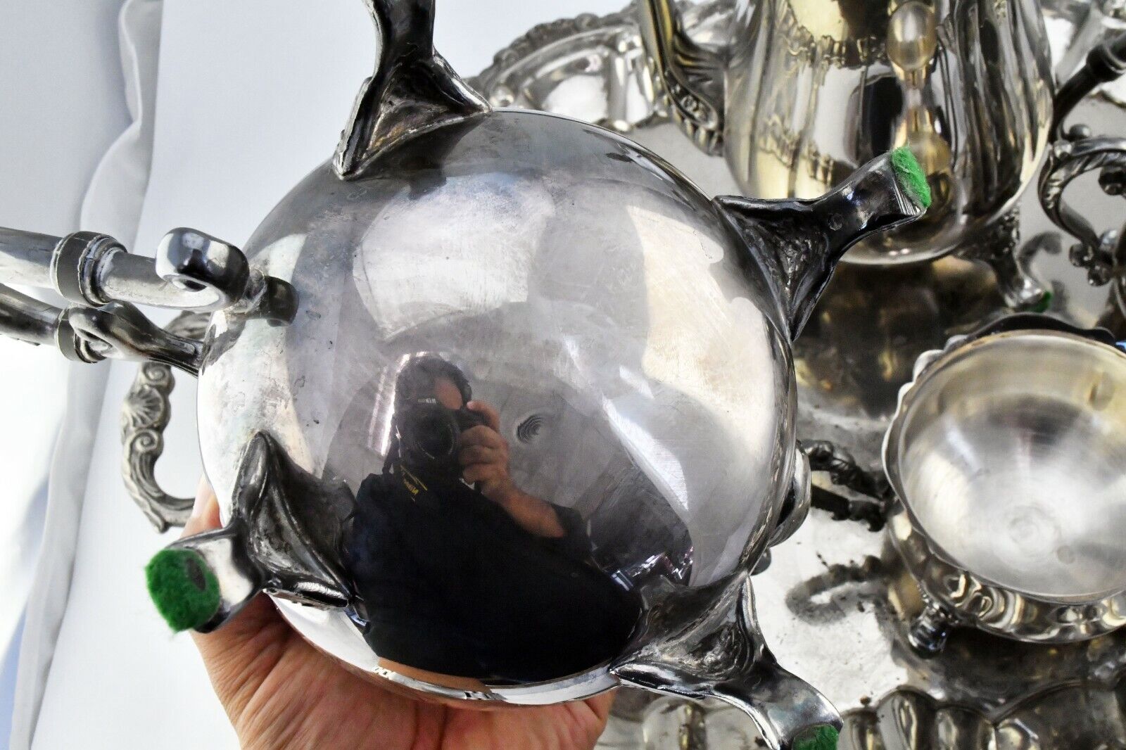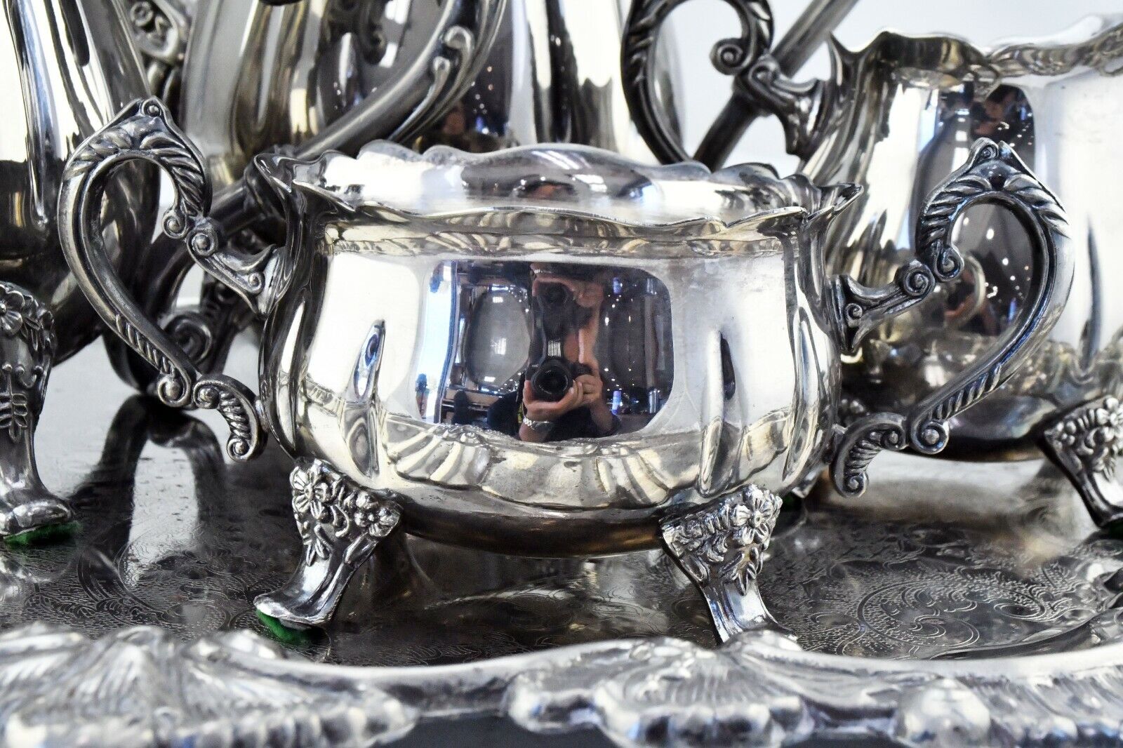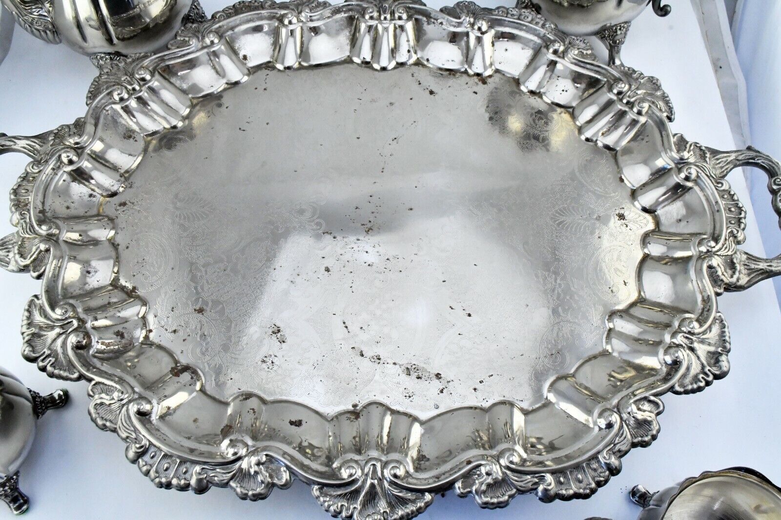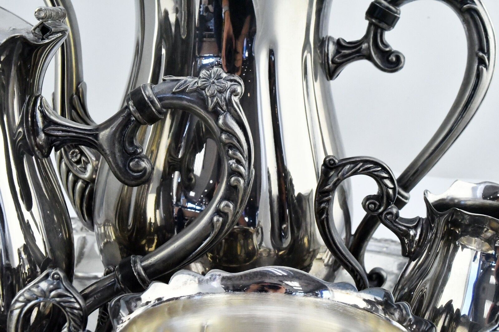 Silver Plate Complete 6pc. Floral Coffee and Tea Set
