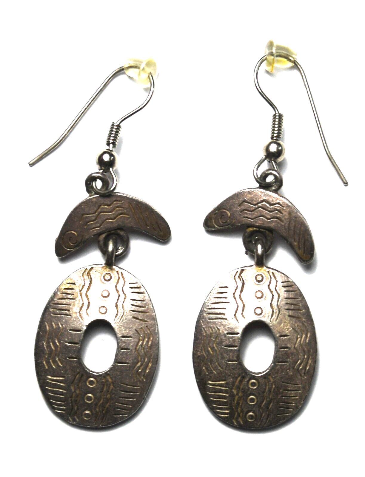 Silver Tone Chico's Wave Oval O Dangle Earrings 55mm x 17mm