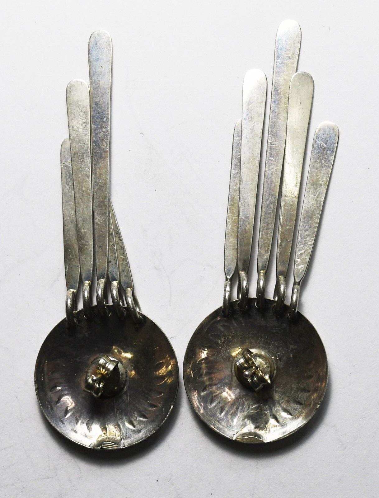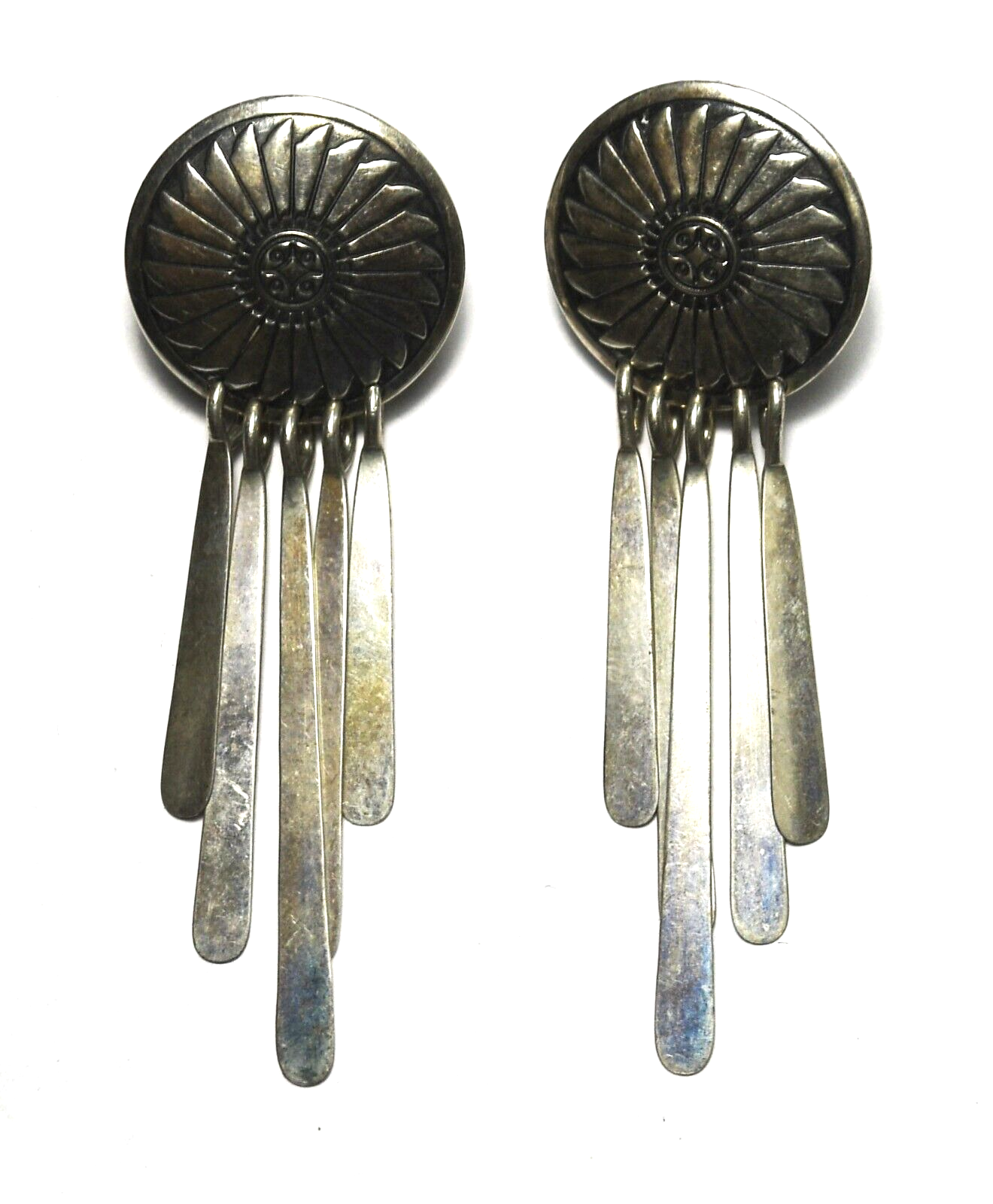 Silver Tone Round Concho Beaded Dangle Earrings 56mm x 19mm