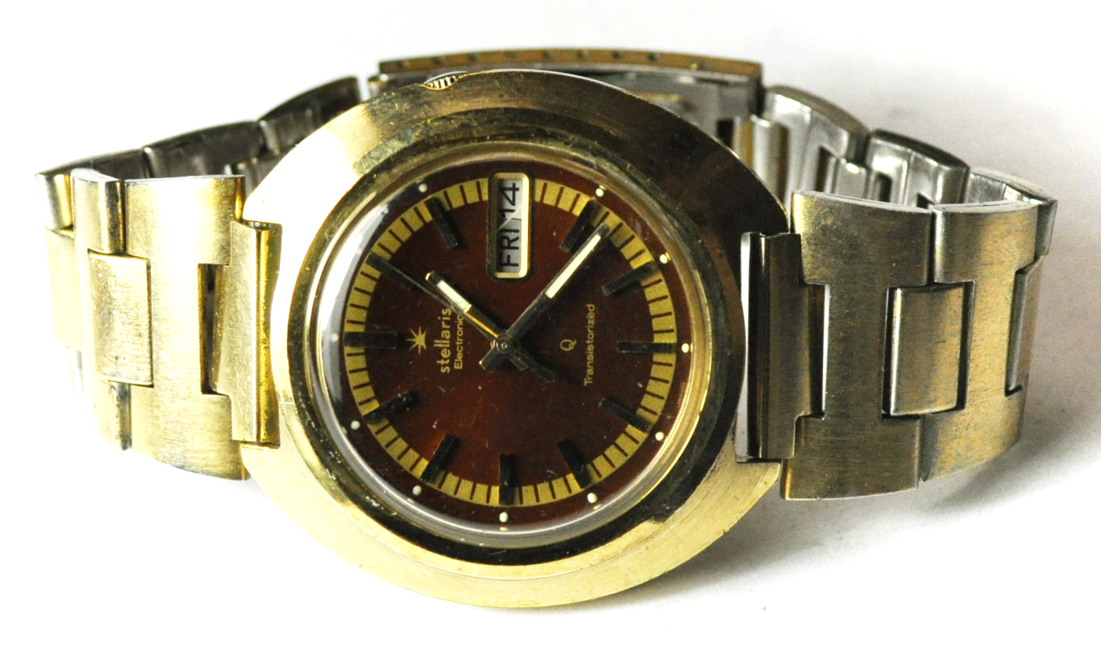 Stellaris Electronic Transistorized Wristwatch 43mm Day Date Red Dial
