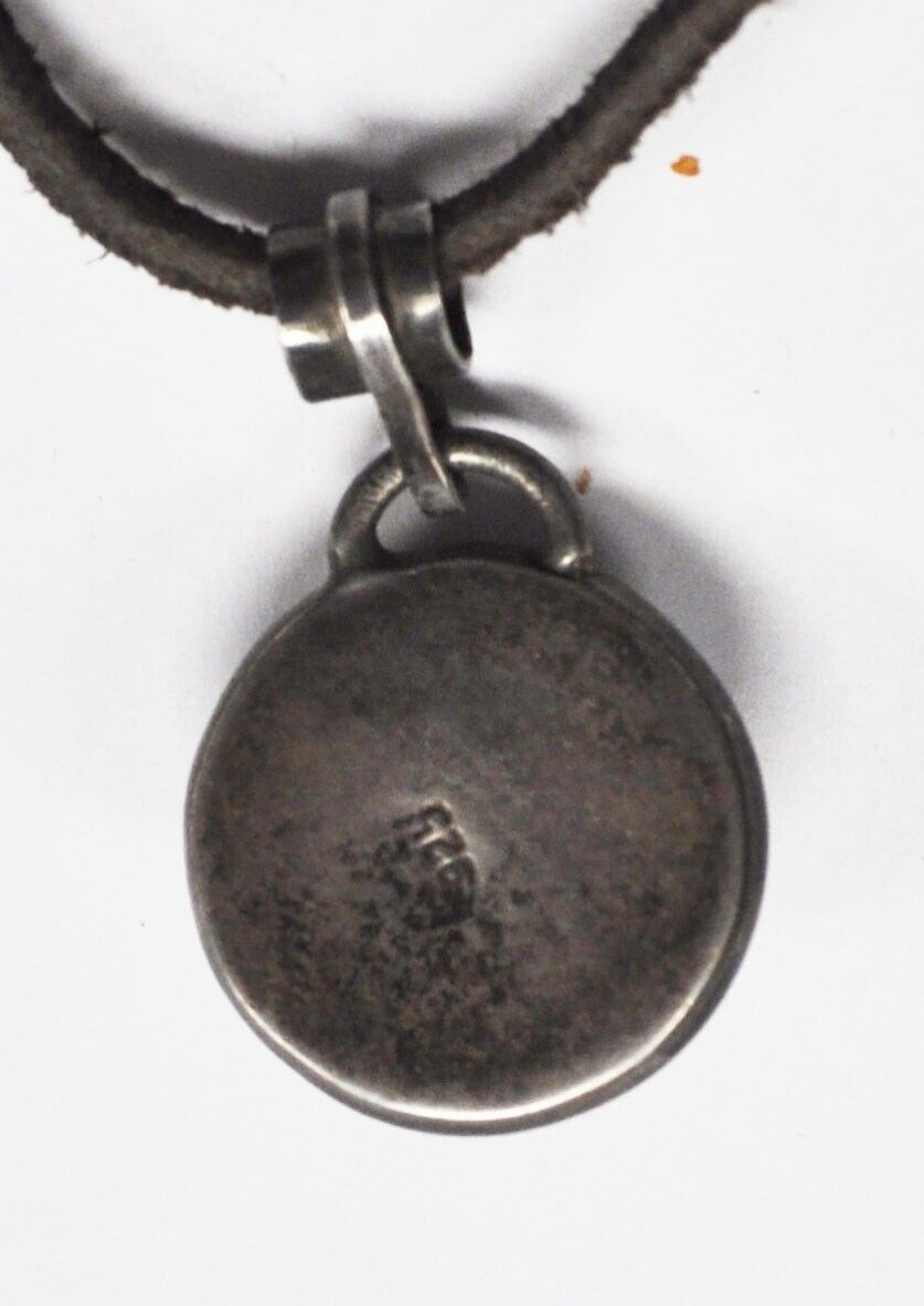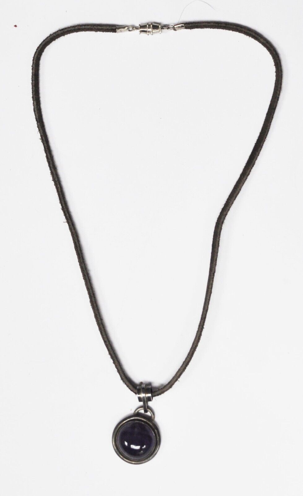 Sterling 34mm Round Domed Amethyst Slider Pendant Brown Cord 17" Necklace