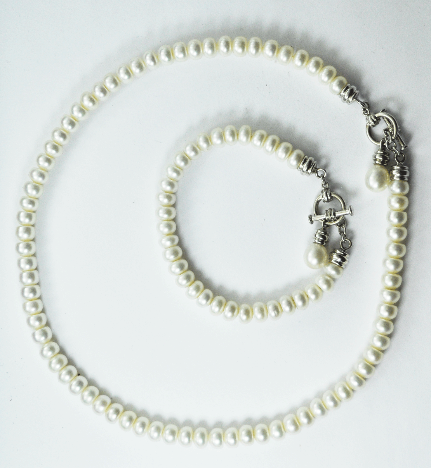 Sterling 7mm FW Pearl Toggle 17" Necklace & 7.5" Bracelet Set Dangle Charm