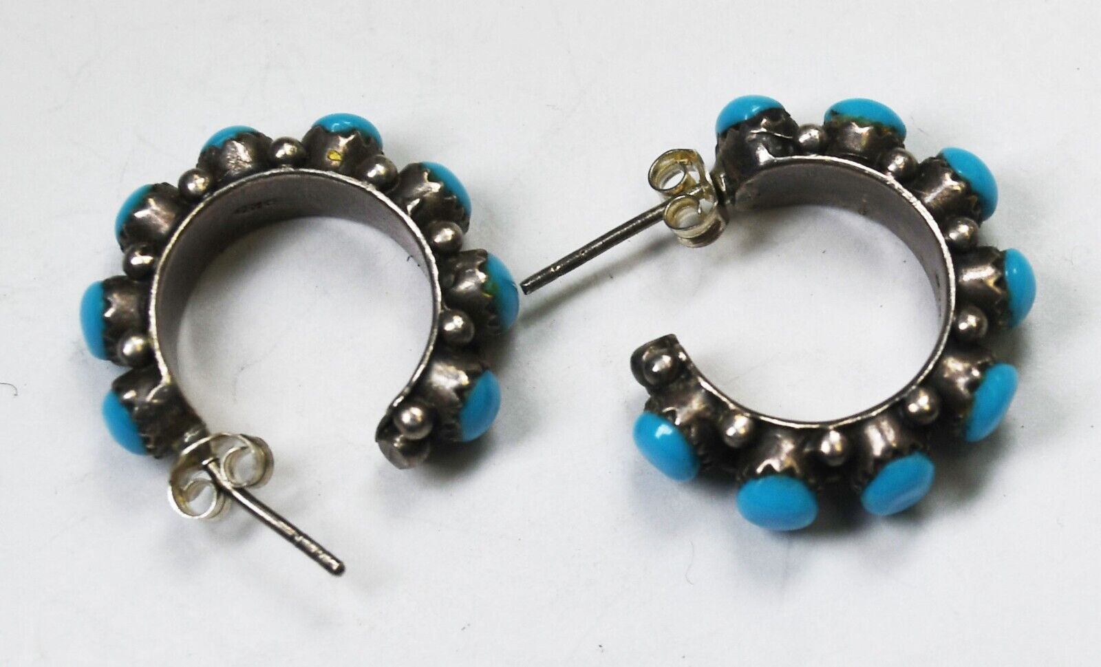 Sterling 8 Eight Turquoise Single Row Hoop Earrings 23mm x 8mm