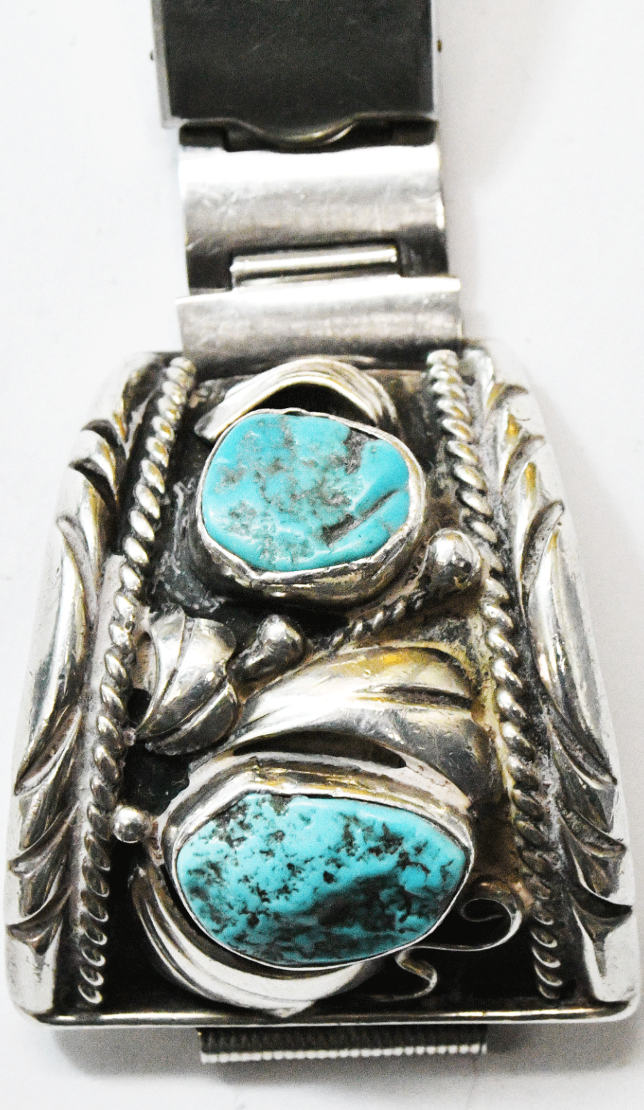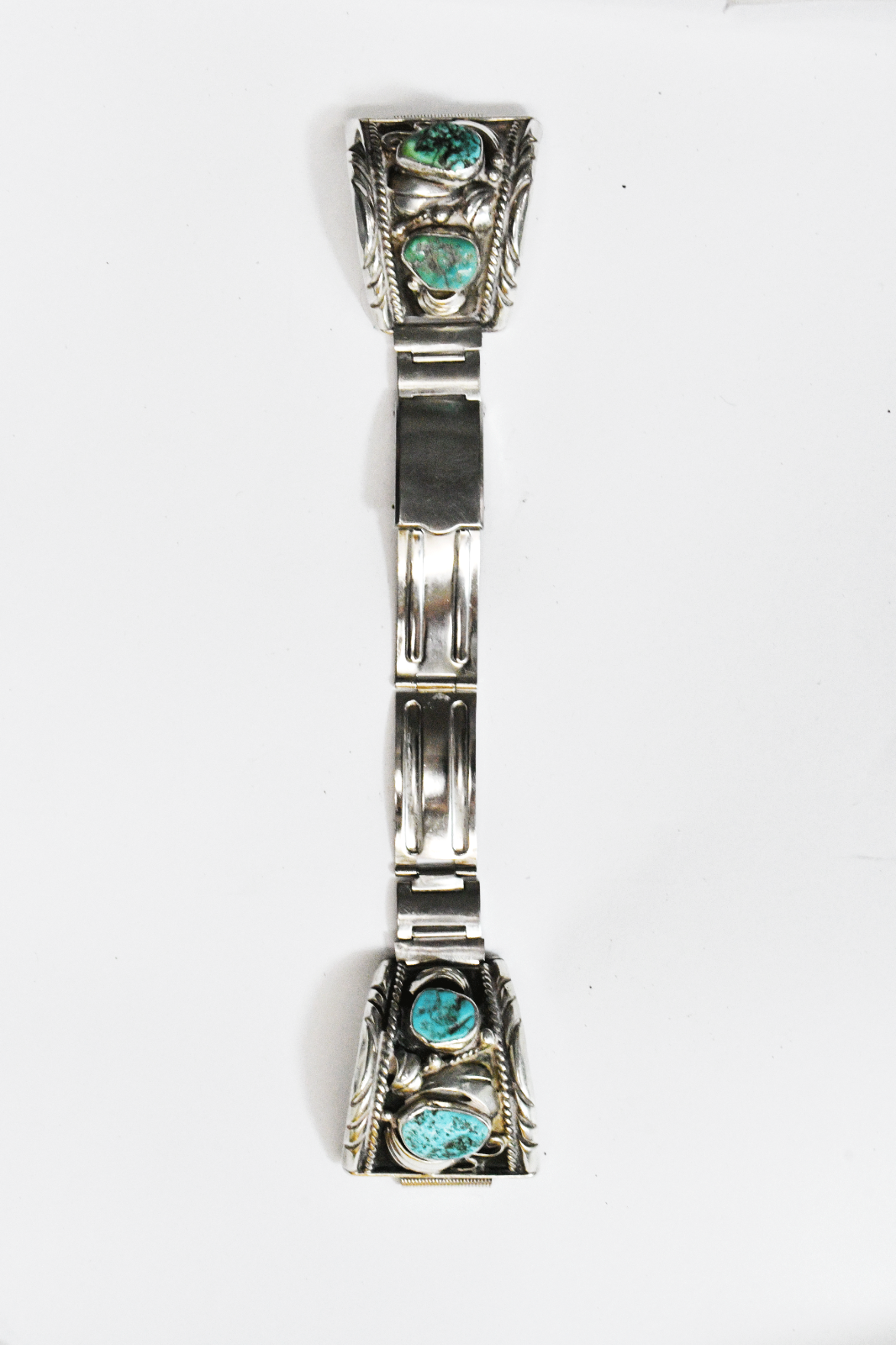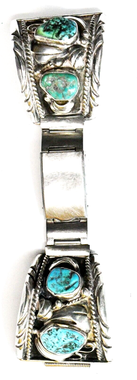 Sterling Al Joe Turquoise Chunk Watch Tip Band End Bracelet 42mm x 36mm 19mm Lug