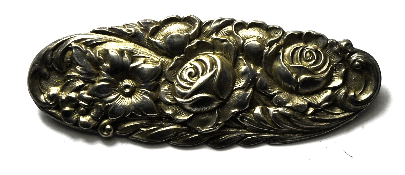 Sterling Antique Embossed Floral Repousse S. Kirk & Son Oval Brooch 62x23mm