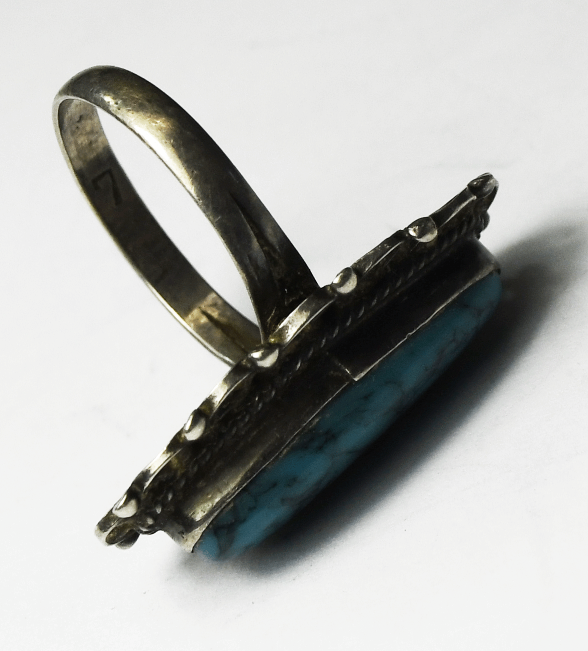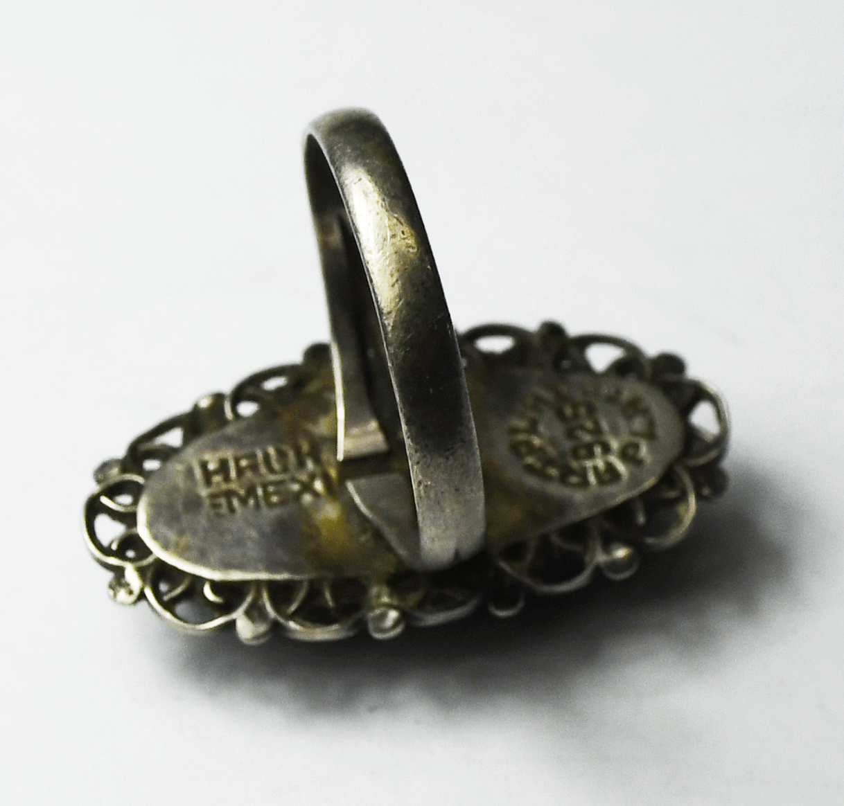 Sterling ART Mexico Faux Plastic Turquoise Filigree Ring 27mm Size 6-1/2