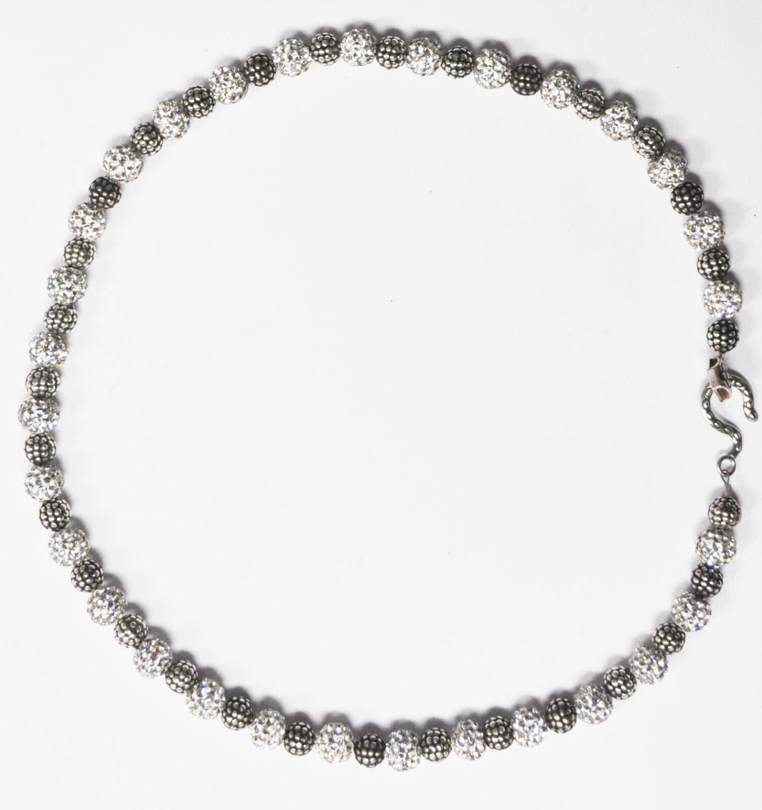Sterling Aya Jordan Crystal Ball Textured Dot Bead & Clasp Necklace 7mm 17.5"