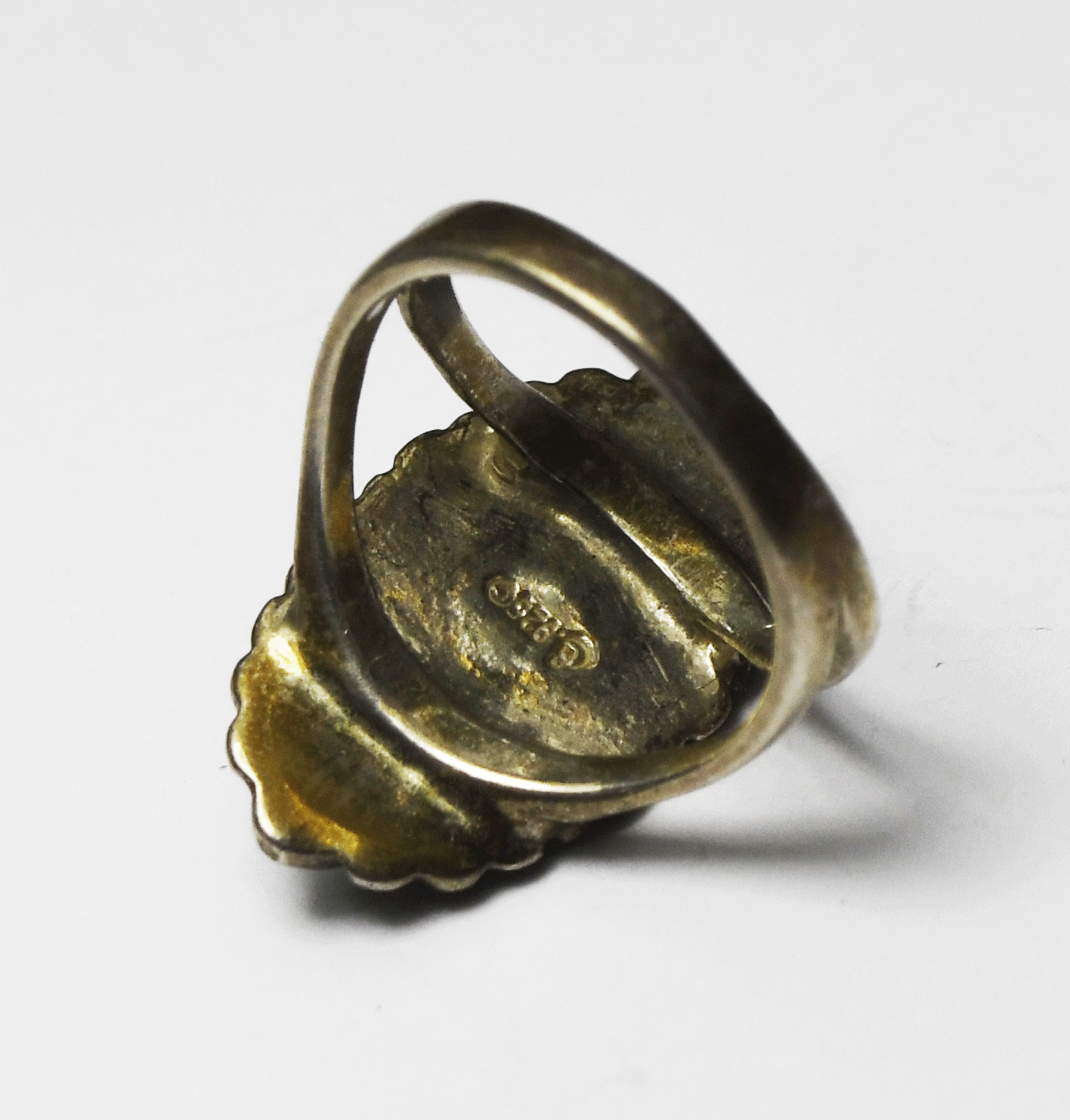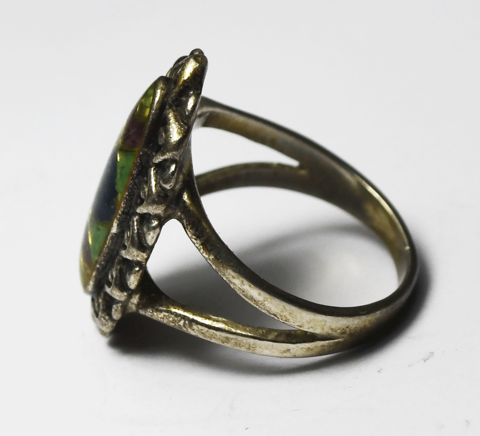 Sterling Carolyn Pollack Blue Green & Purple Chip Inlay Ring 23mm Size 6-1/4
