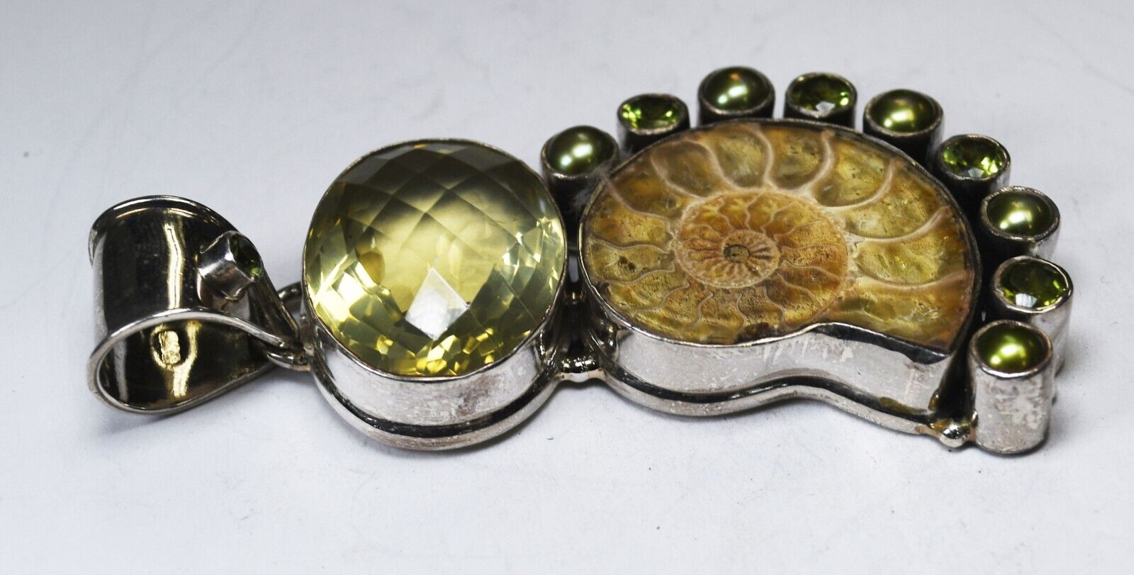 Sterling Citrine Quartz Shell Large Pendant 3" x 40mm