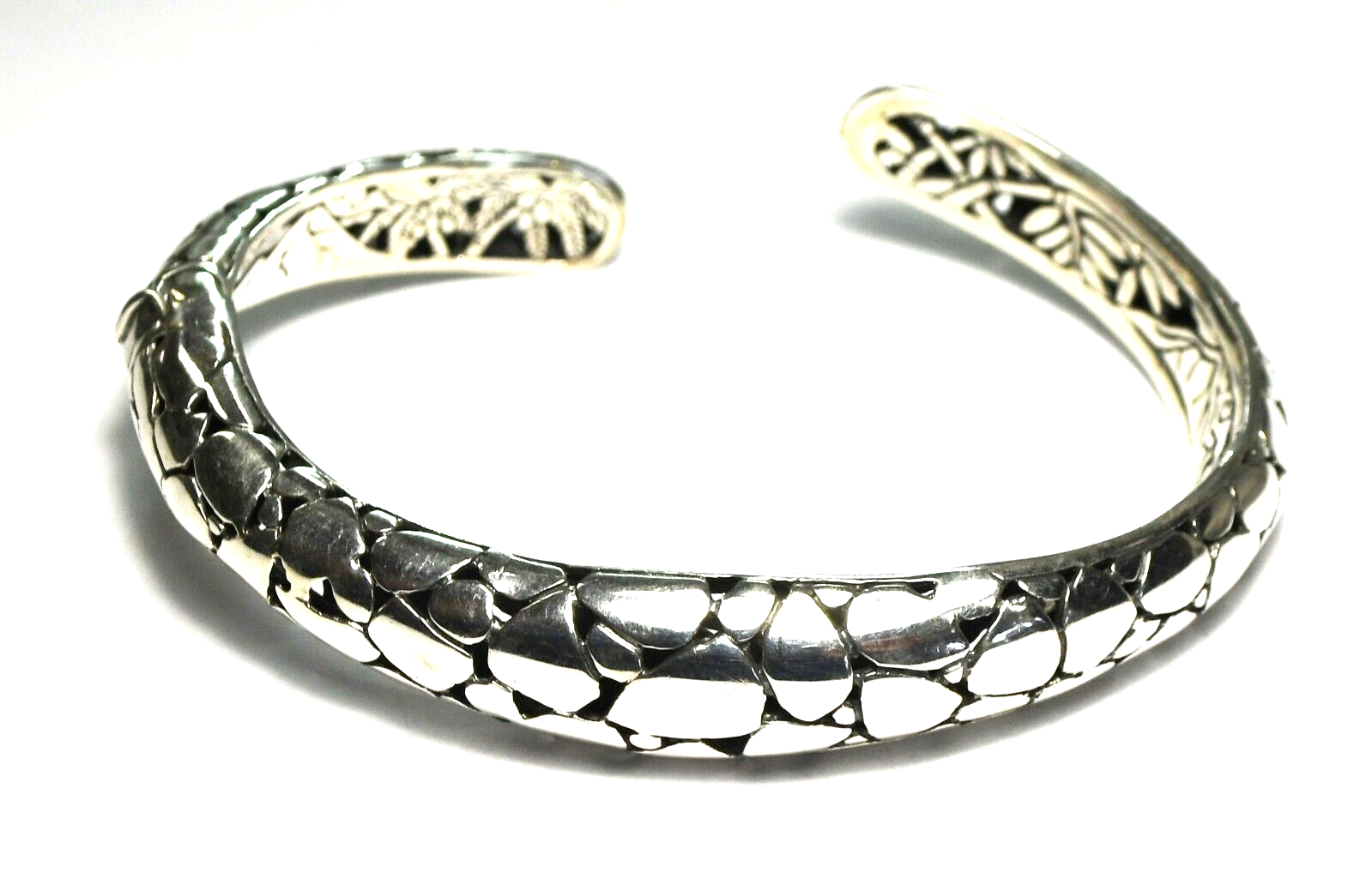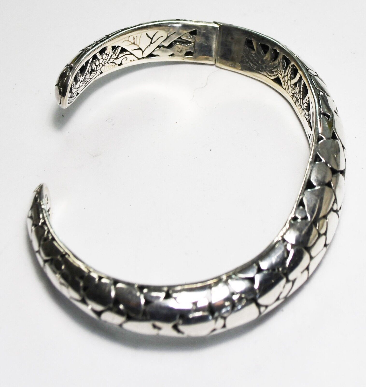 Sterling Cobblestone Filigree Snakeskin Cuff Bracelet Hinged 14mm 7-1/4" Wrist
