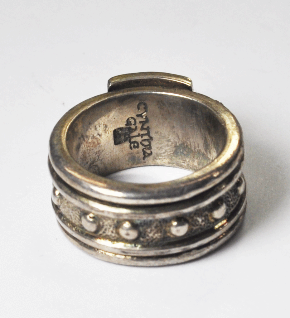 Sterling Cynthia Gale Ornate Cross Dot 11mm Square Solitaire Spinner Ring Size 6