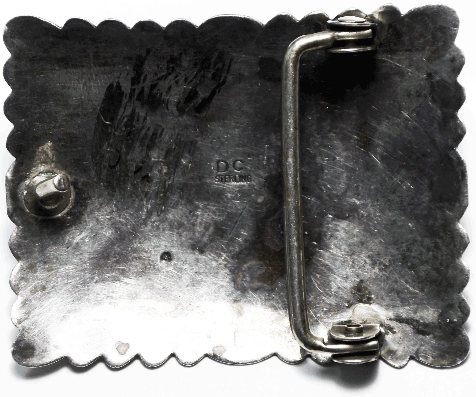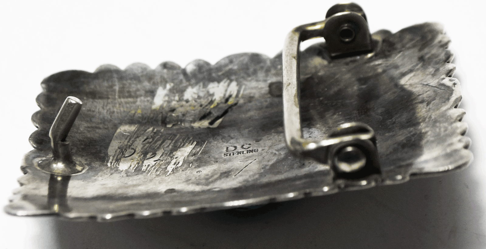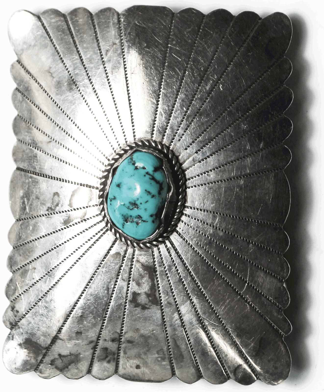 Sterling Delbert Chatter DC Turquoise Chunk Rays Belt Buckle 2.5" x 1-7/8"