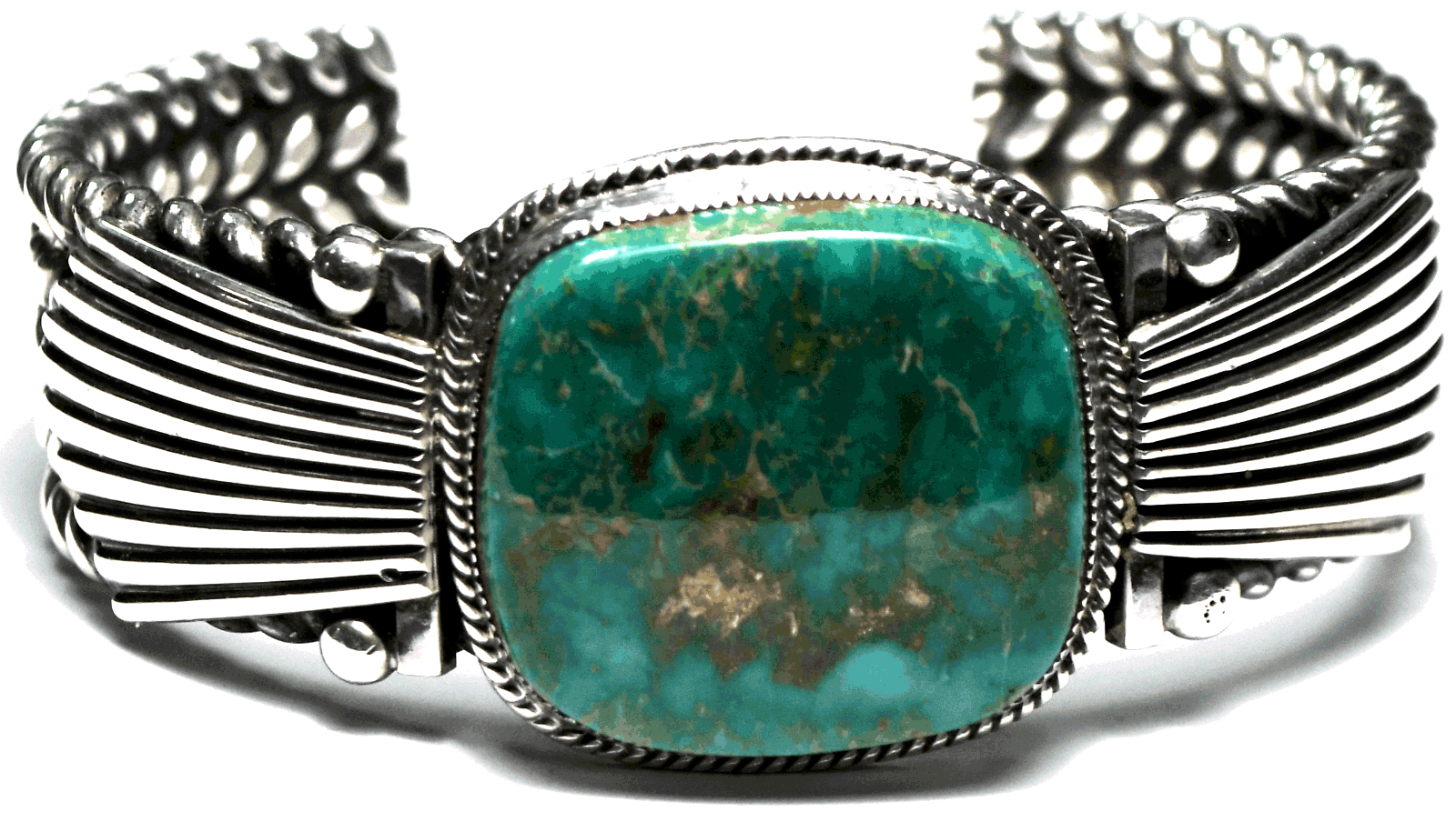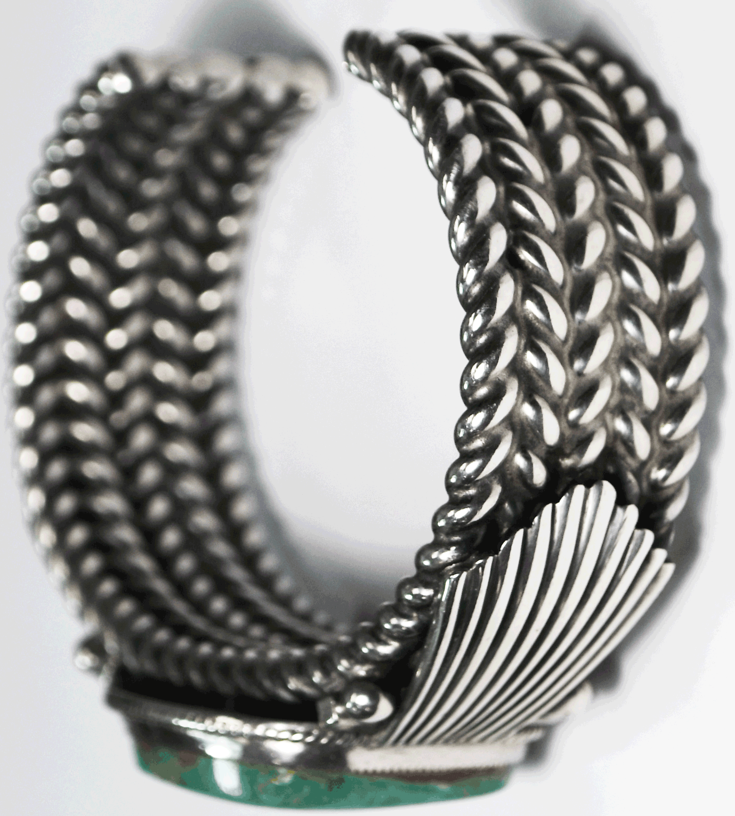 Sterling Delbert Gordon Turquoise 27mm Solid Foxtail Cuff Bracelet 88g