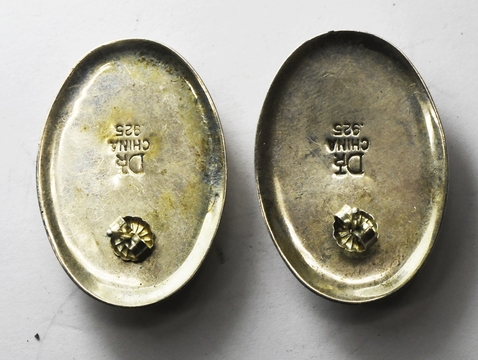Sterling Desert Rose Purple Green Turquoise Star Moon Oval Earrings 31mm 15.7g