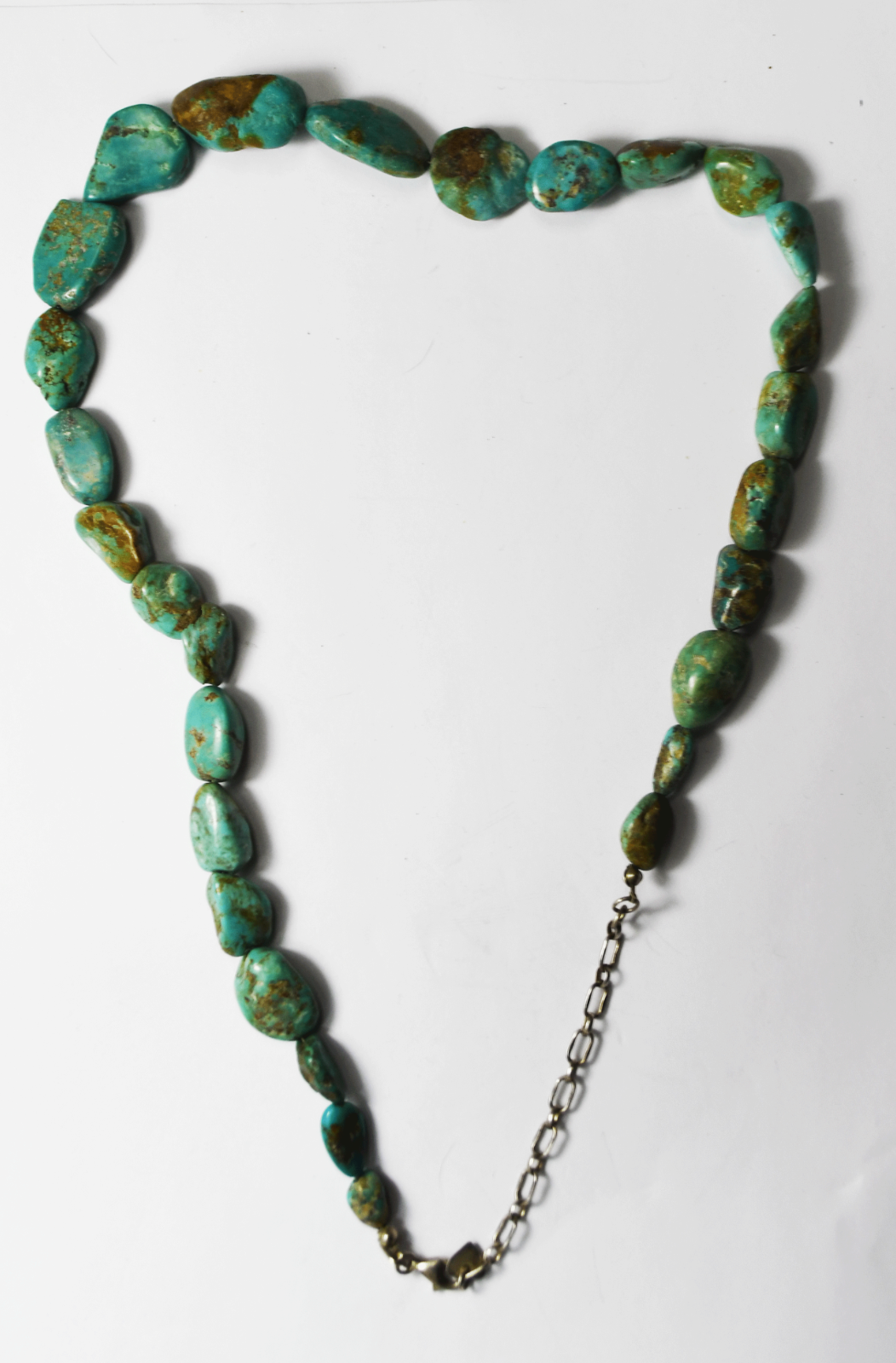 Sterling Desert Rose Turquoise Chunk Graduated 7-16mm Bead 23" Necklace