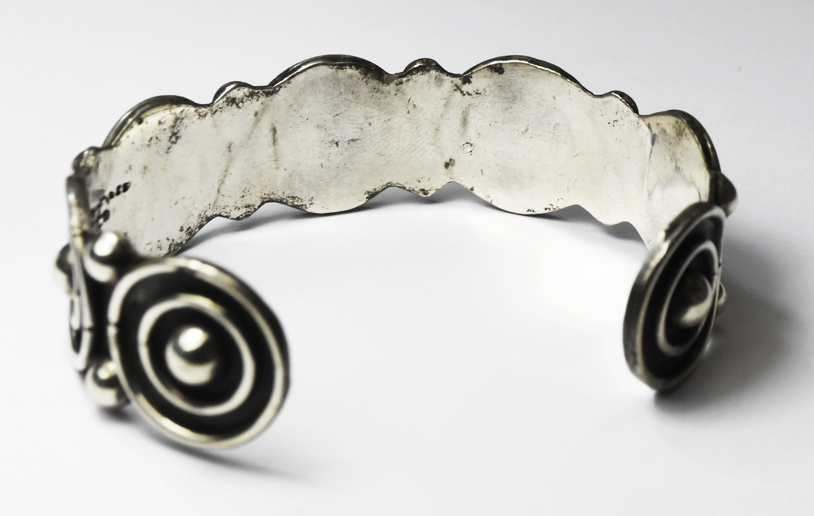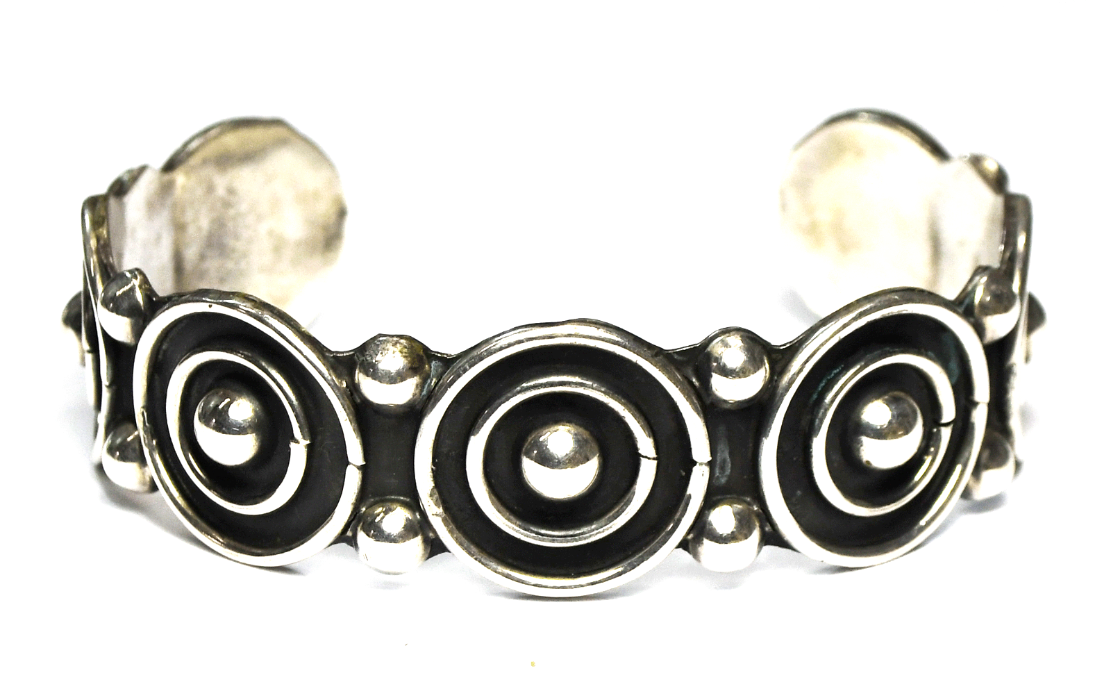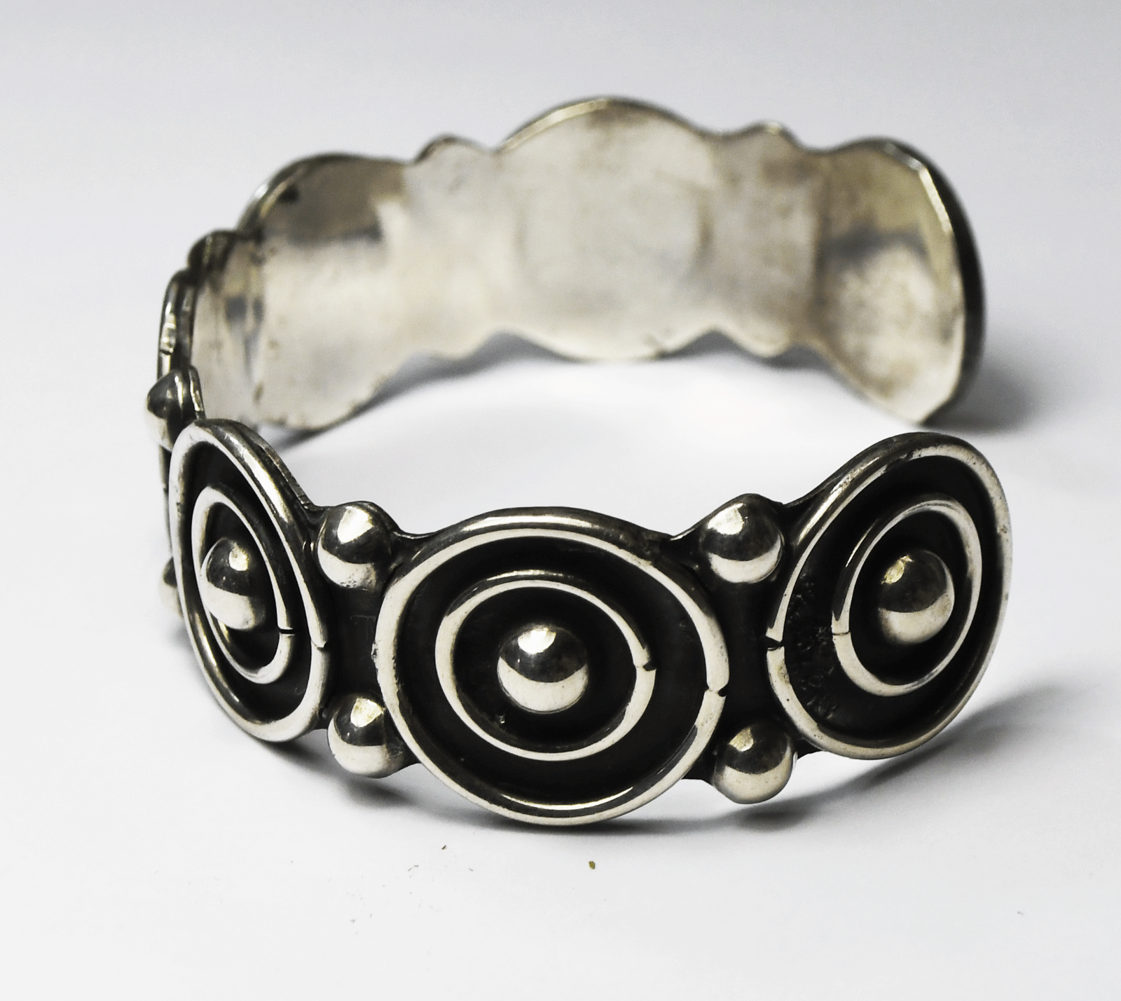Sterling Double Circle Dot Center Cuff Bracelet 19mm 7" Wrist 31.6g
