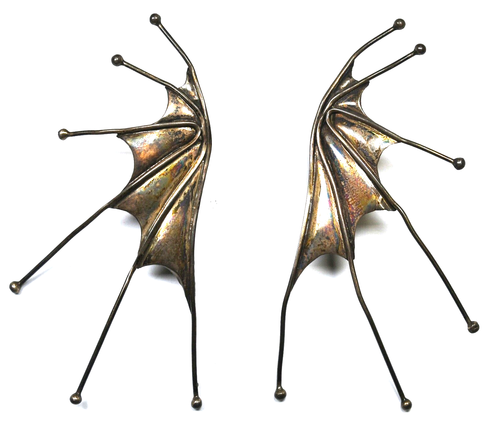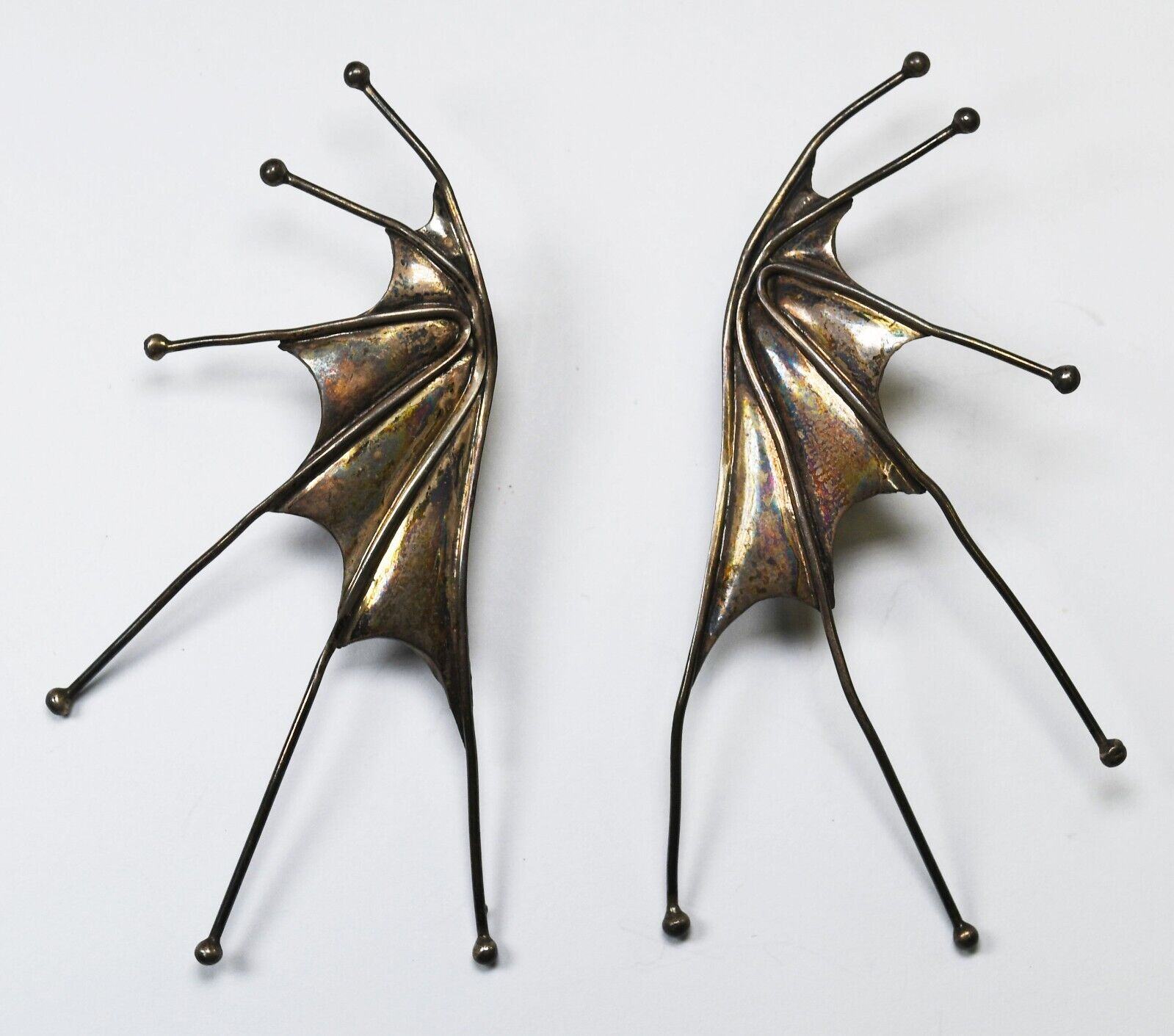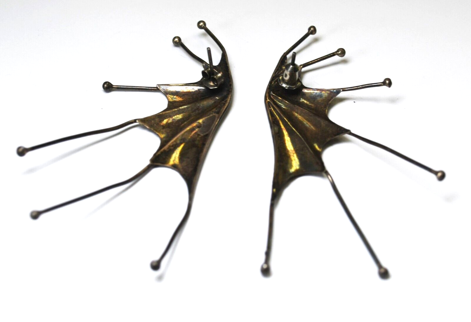 Sterling Dragon Bat Wing Halloween Angry Butterfly Earrings 80mm x 40mm