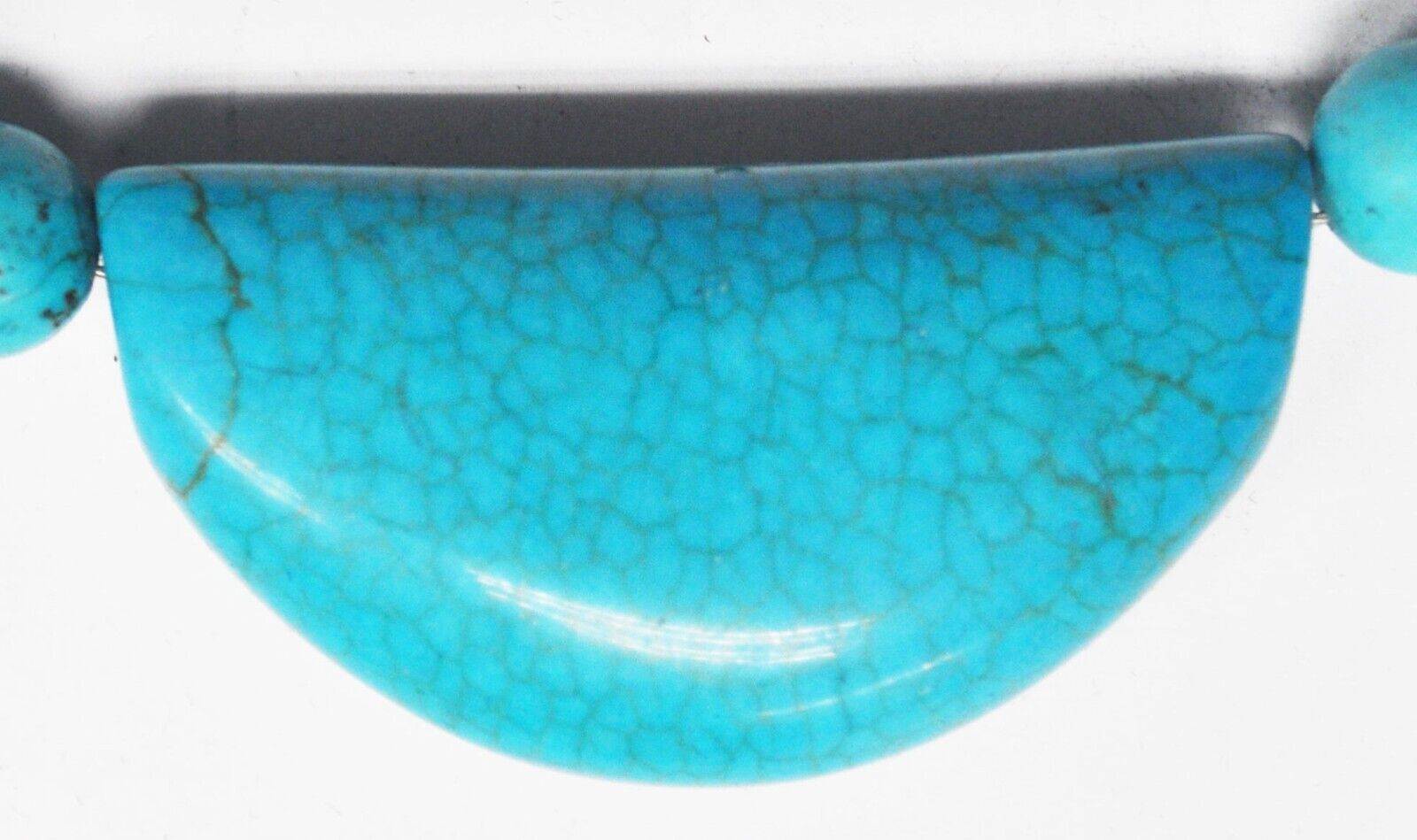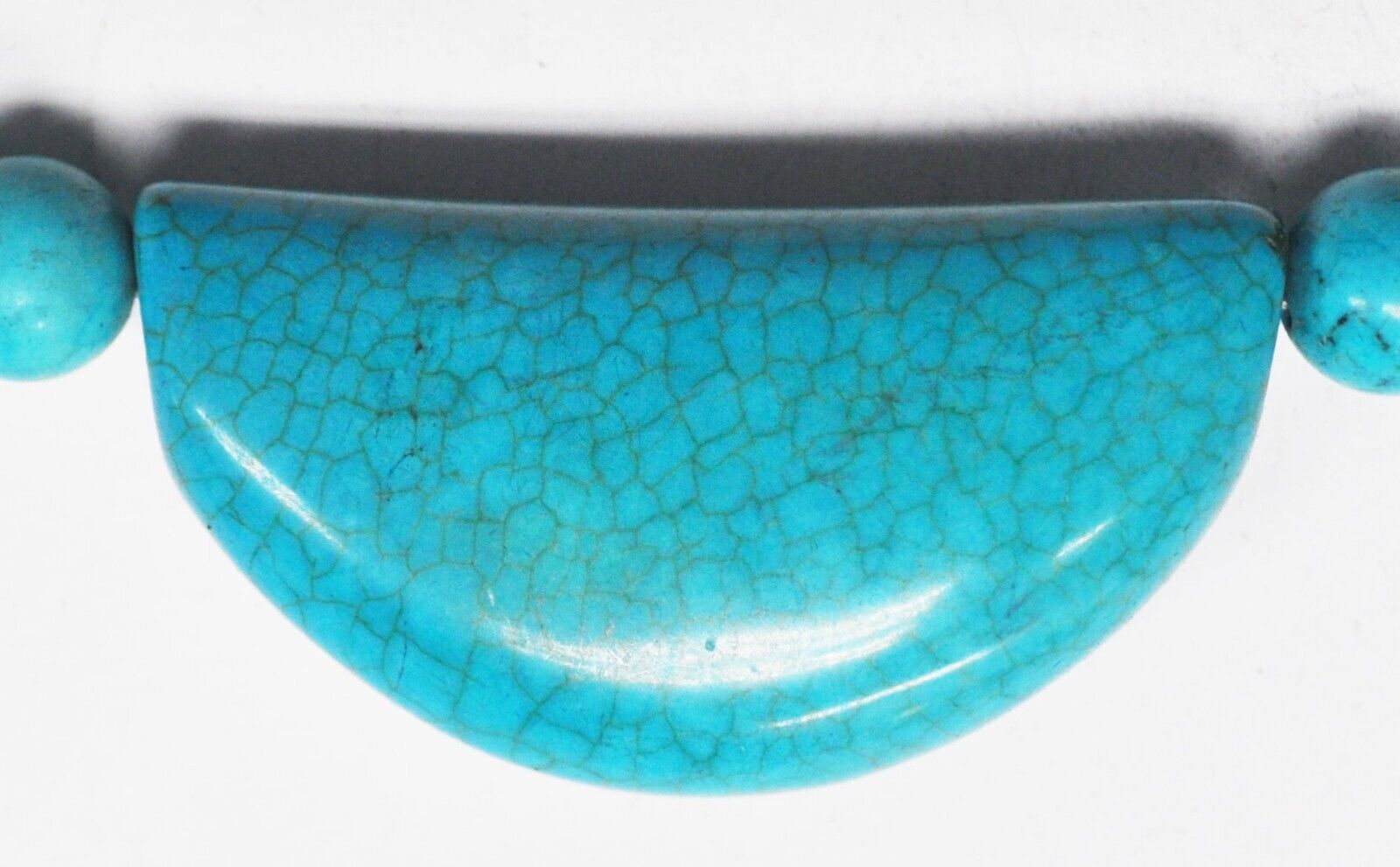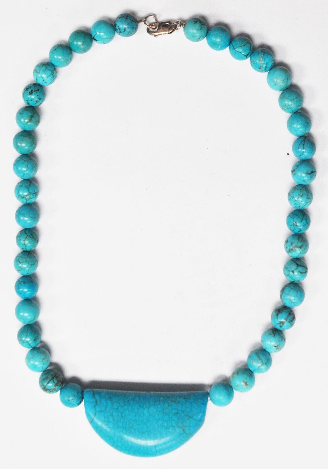 Sterling Dyed Howlite Turquoise 10mm Bead Necklace Crescent 27mm Pendant 18"