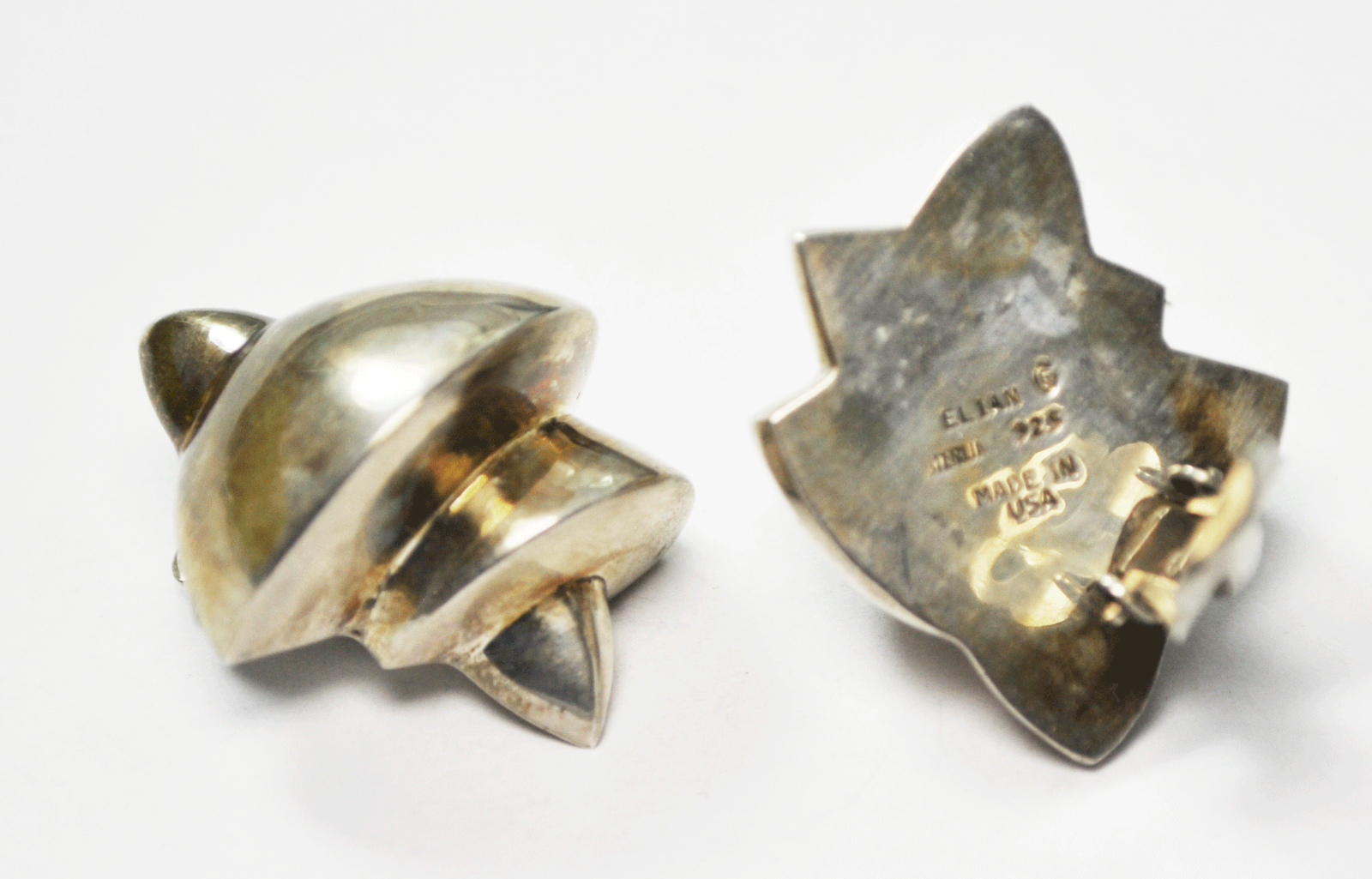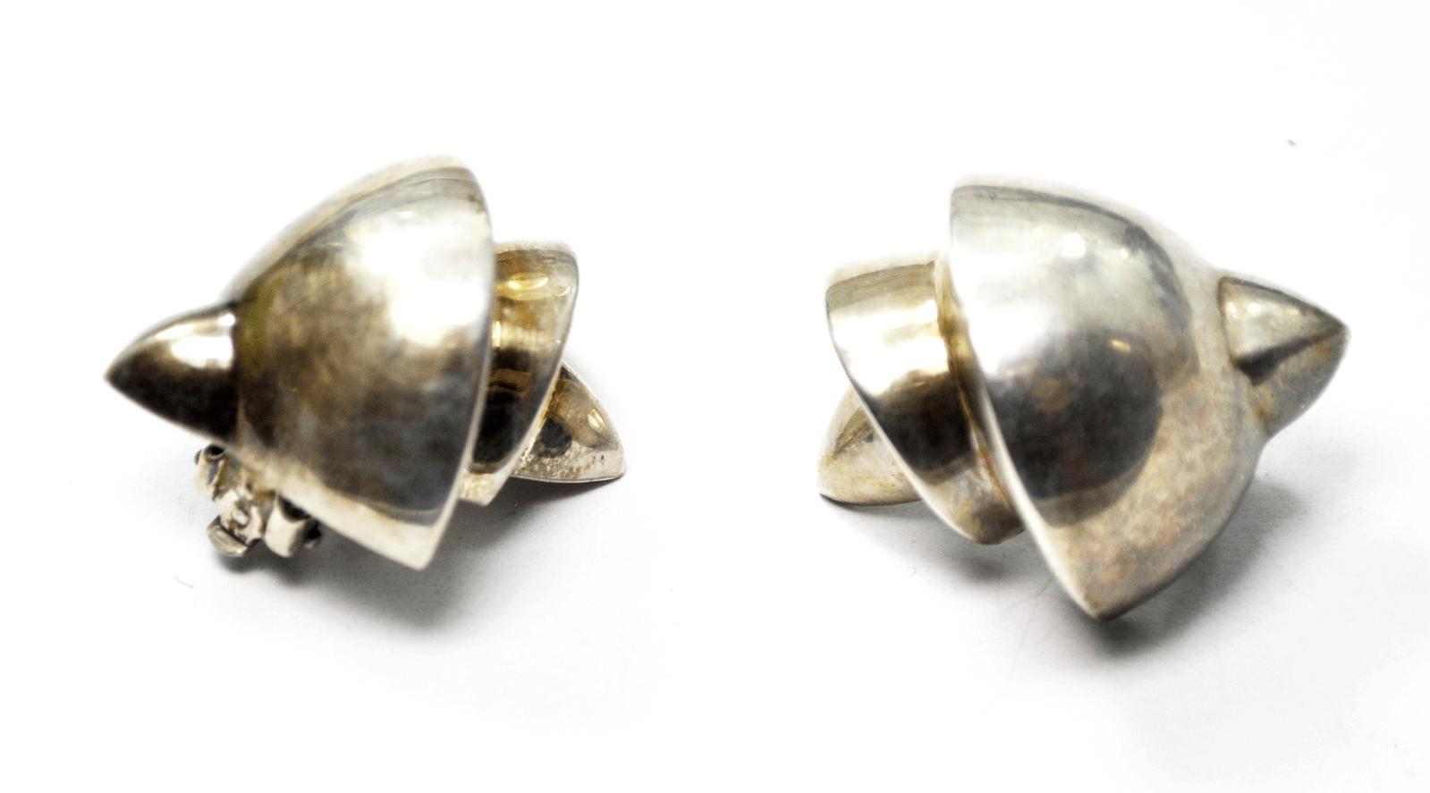 Sterling Elian Large Heavy Conch Shell Stepped Clip On Earrings 32mm x 26mm