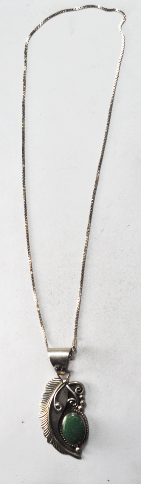 Sterling Floral Leaf Green Turquoise Amethyst Pendant 63mm x 28mm 17" Box Chain