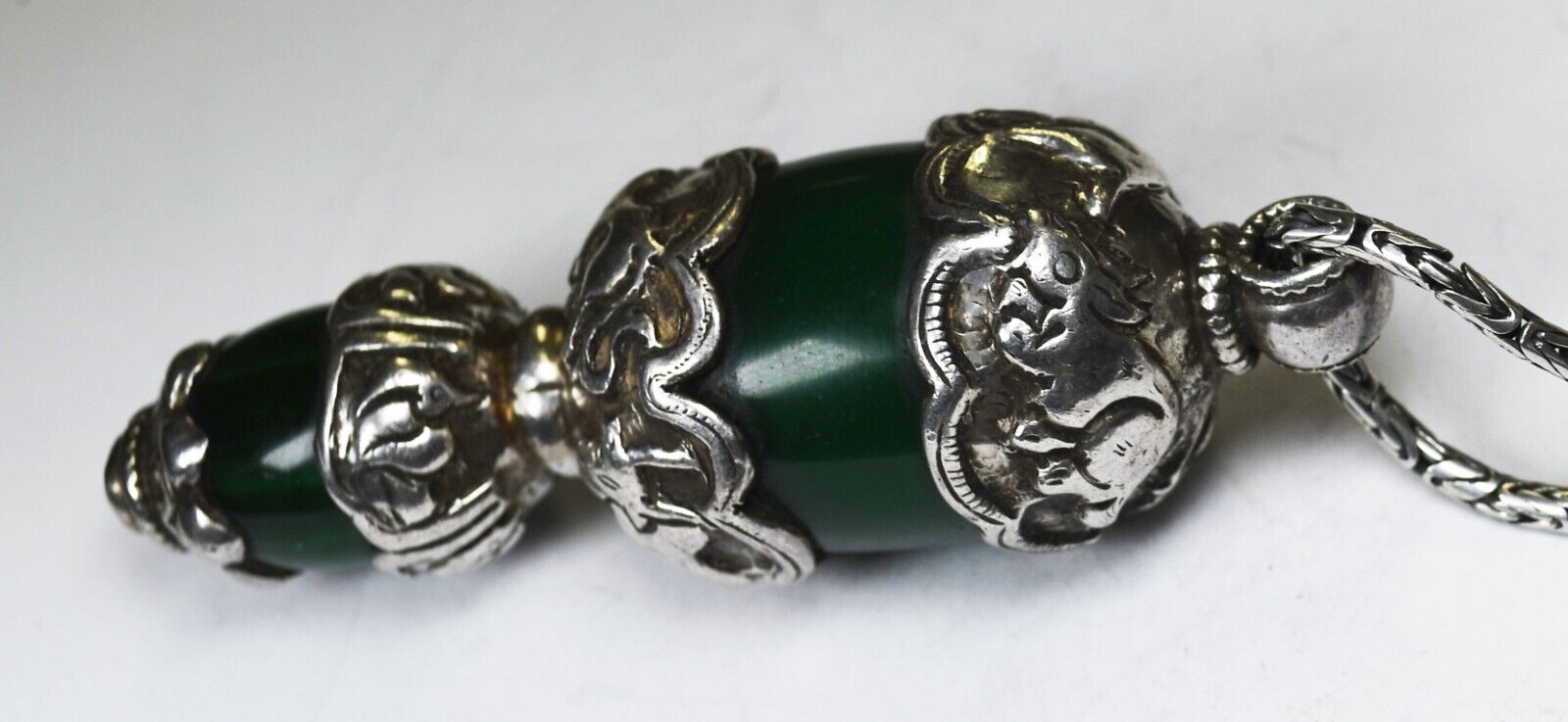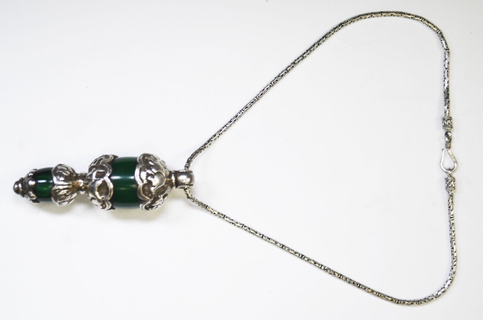 Sterling Green Porcelain Heavy Animal 3.5" x 28mm Pendant 2.5mm 18" Byzantine