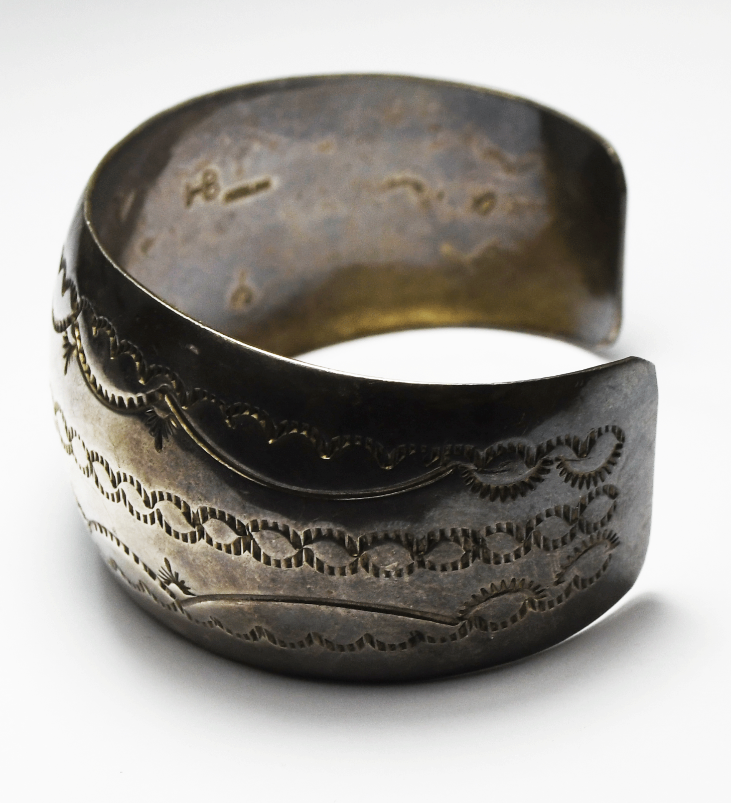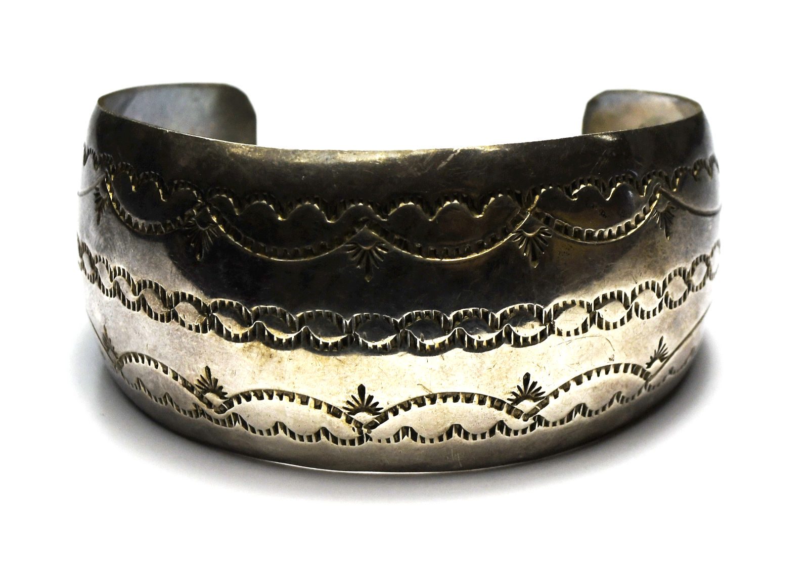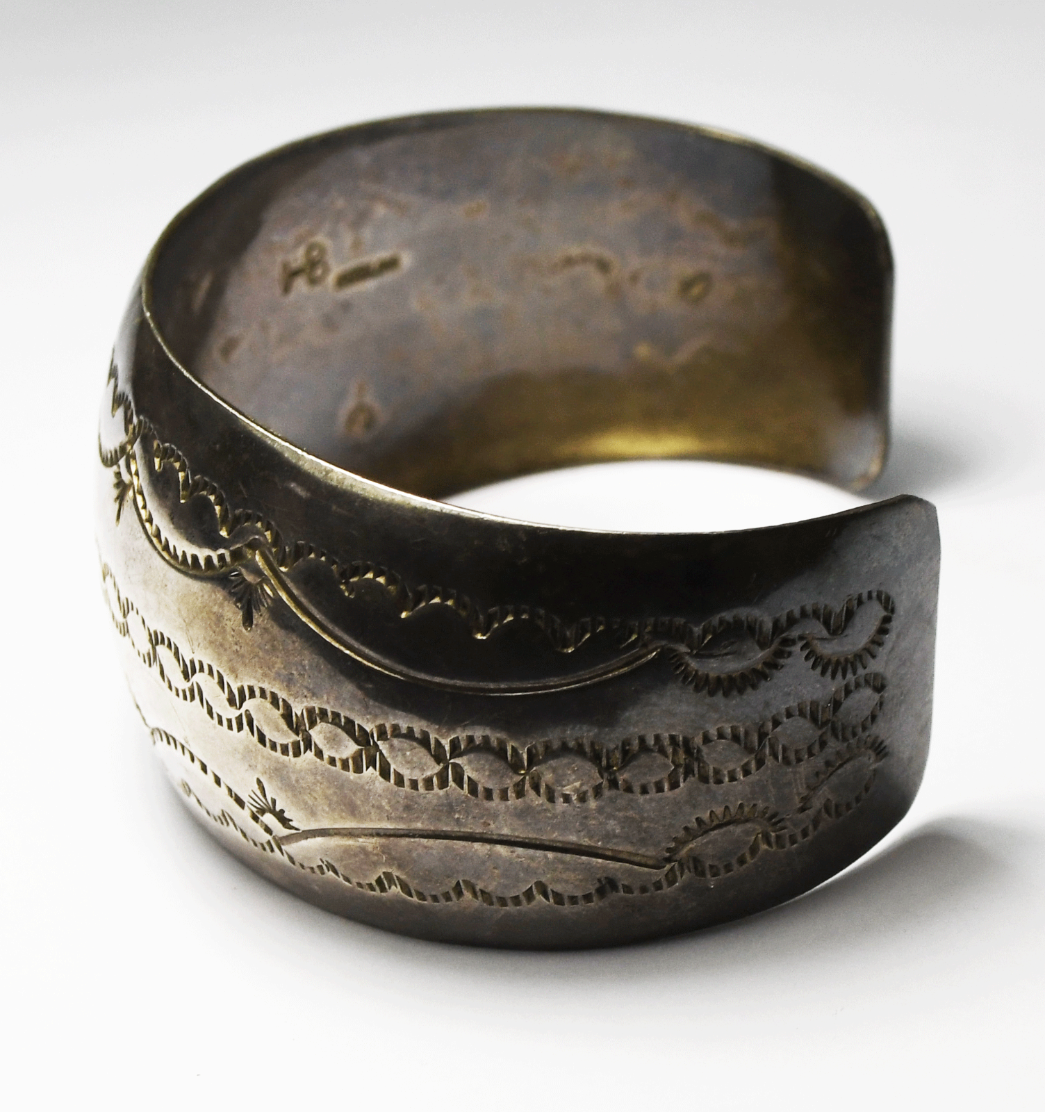Sterling HC Signed Wavy Stripe Cuff Bracelet 32mm 7-1/4" Wrist