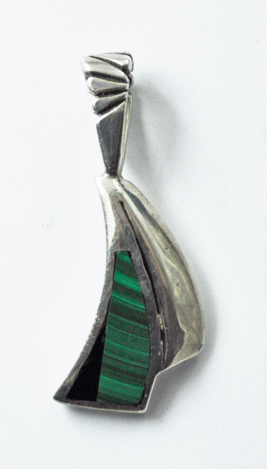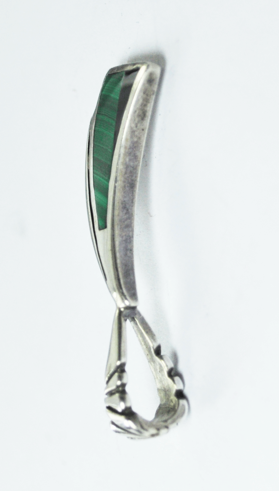 Sterling Jaxon Malachite & Onyx Green Inlay Triangular Pendant Etched 1.5"