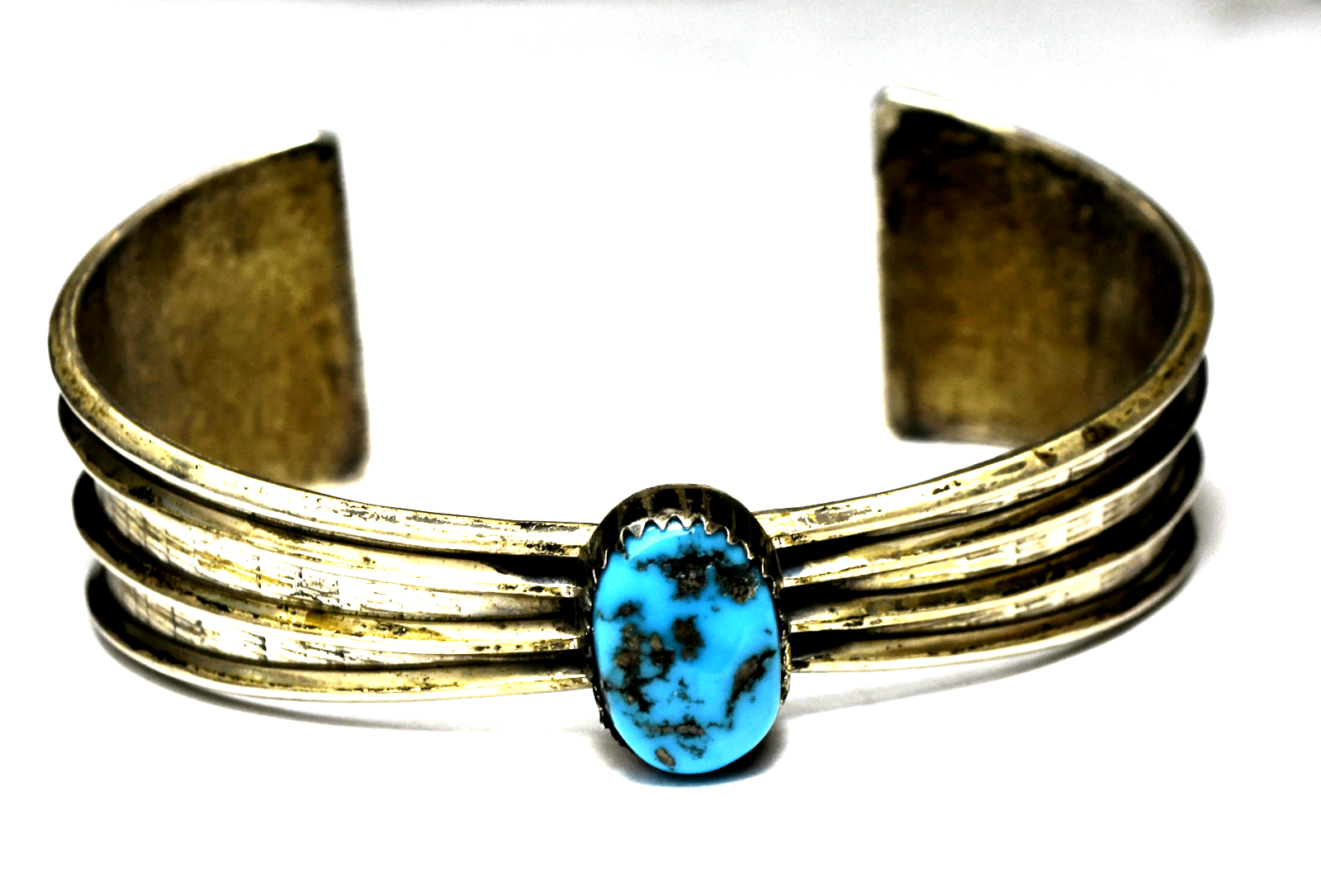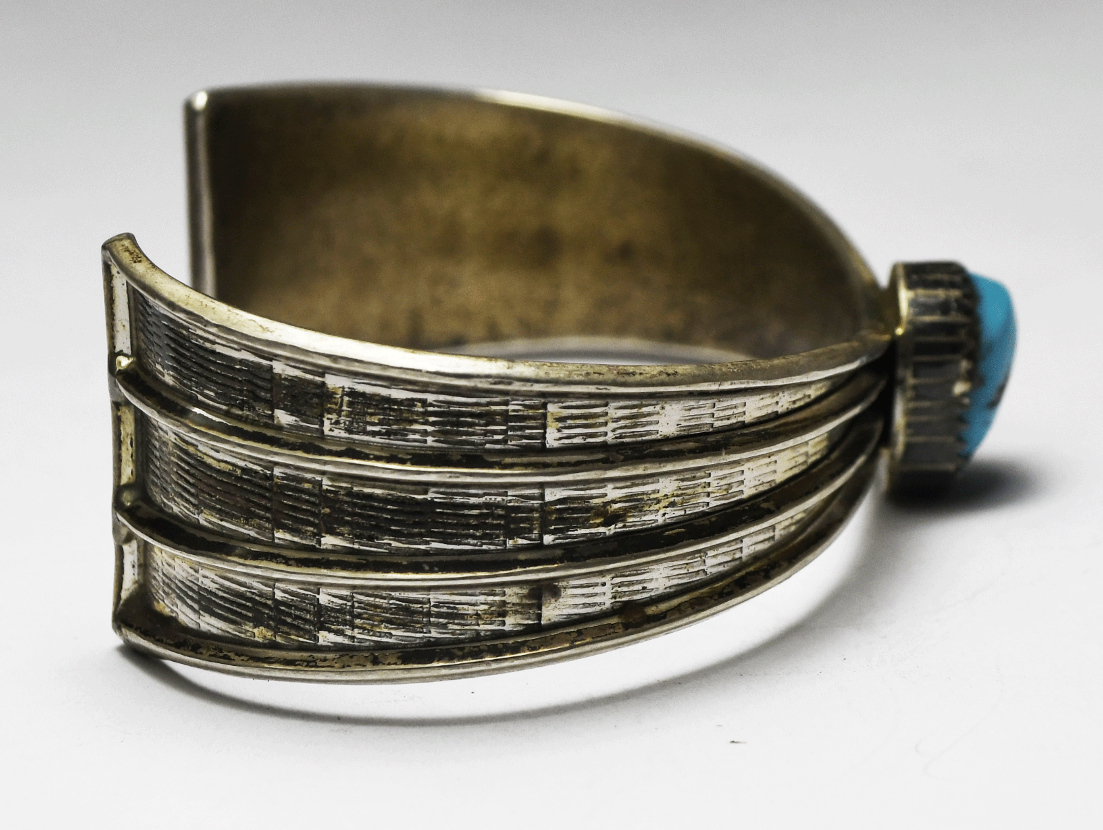 Sterling John Delvin Striped 15mm Turquoise Cuff Bracelet Tapered 25mm 7" Wrist