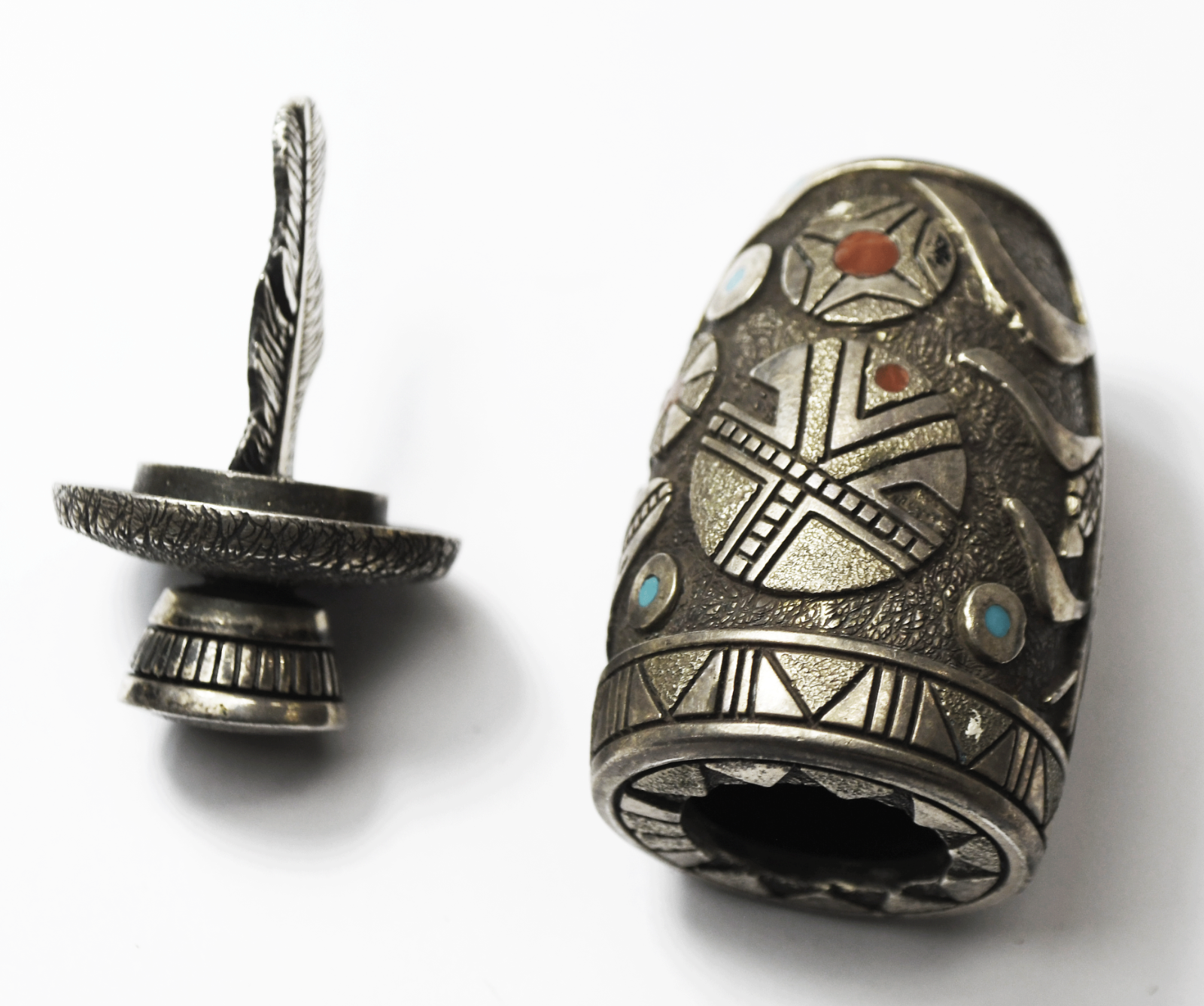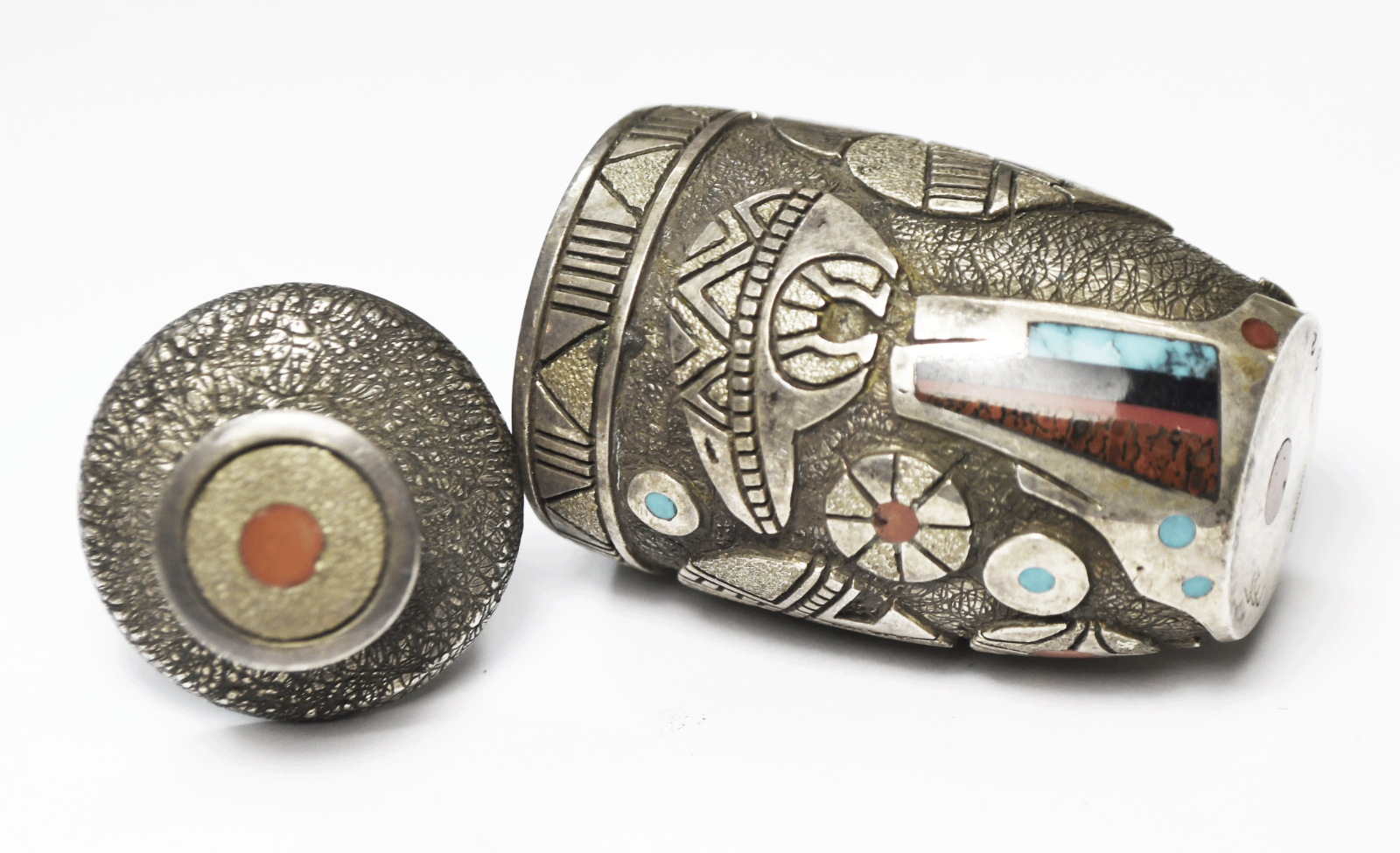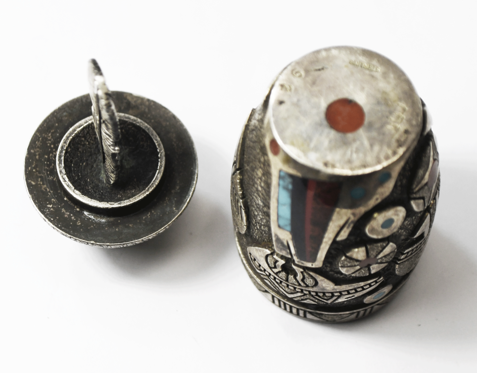 Sterling Lee Epperson Tobacco Snuff Bottle Turquoise Coral 2-3/4" x 36mm 216g